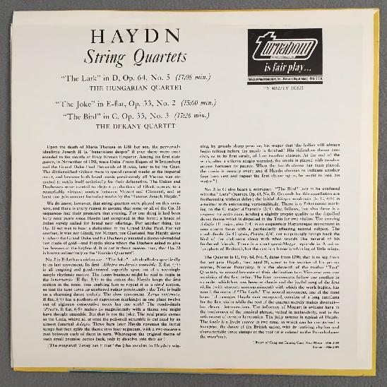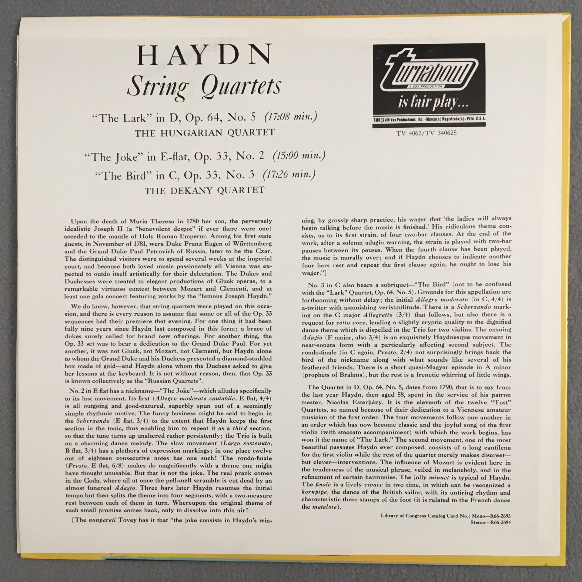K790 Haydn 3 String Quartets Dekany Quartet Turnabout TV 34062S Stereo