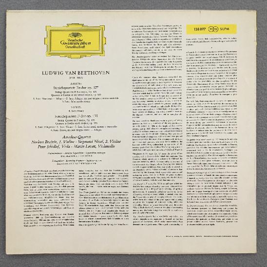 J637 Beethoven String Quartets Amadeus Quartet DGG 138 897 SLPM Stereo Tulip