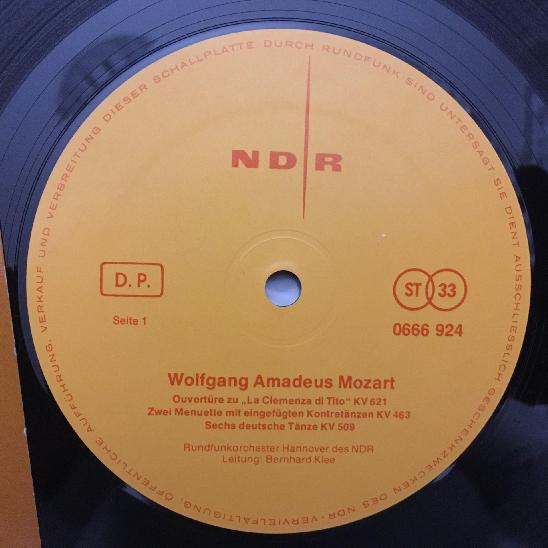 K799 Mozart Overture Menuets German Dances Klee NDR 0666 924 Stereo