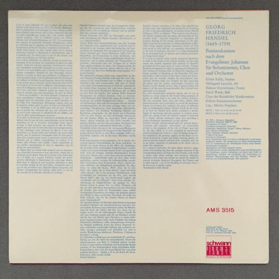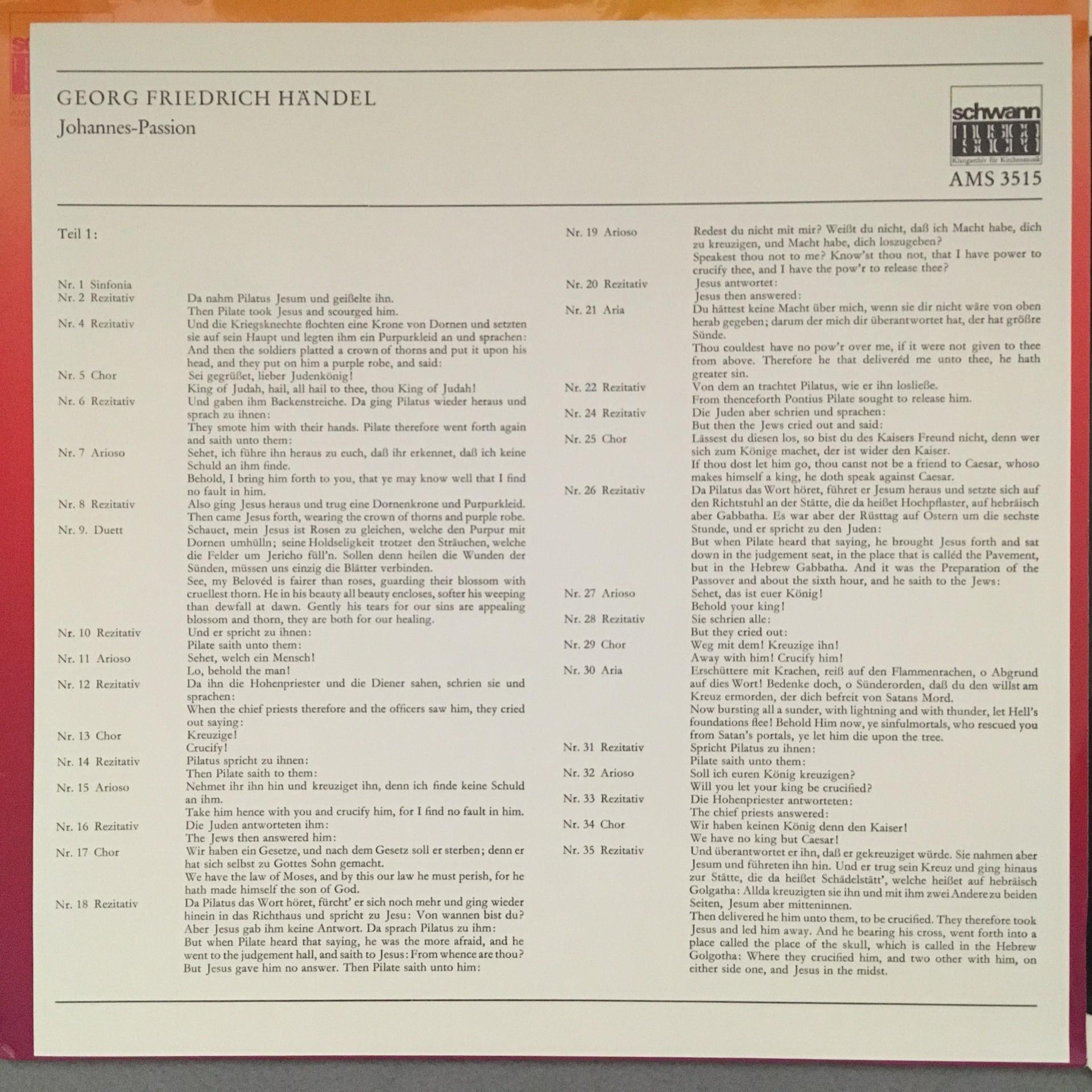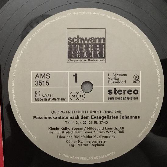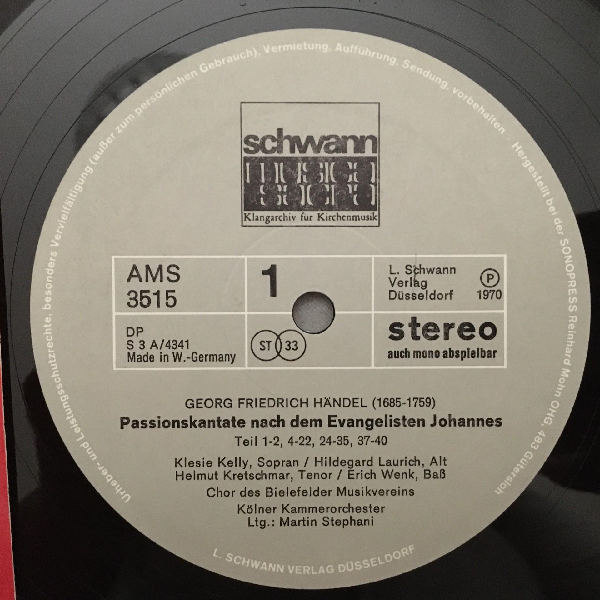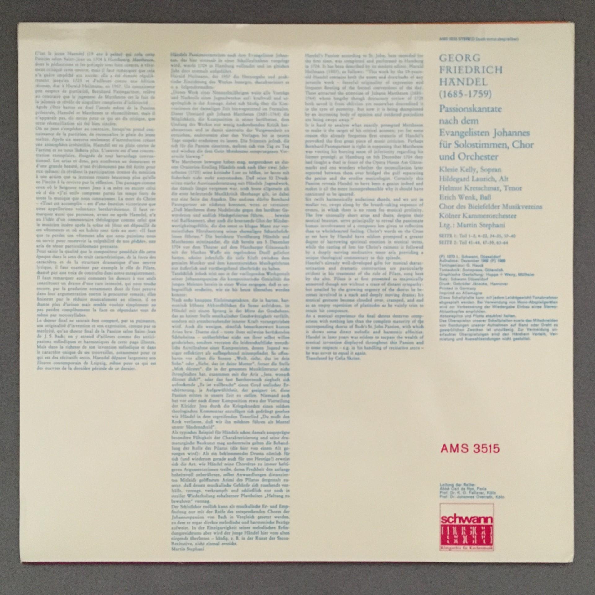 K802 Handel St. John Passion Cantata Kelly Stephani Schwann AMS 3515 Stereo