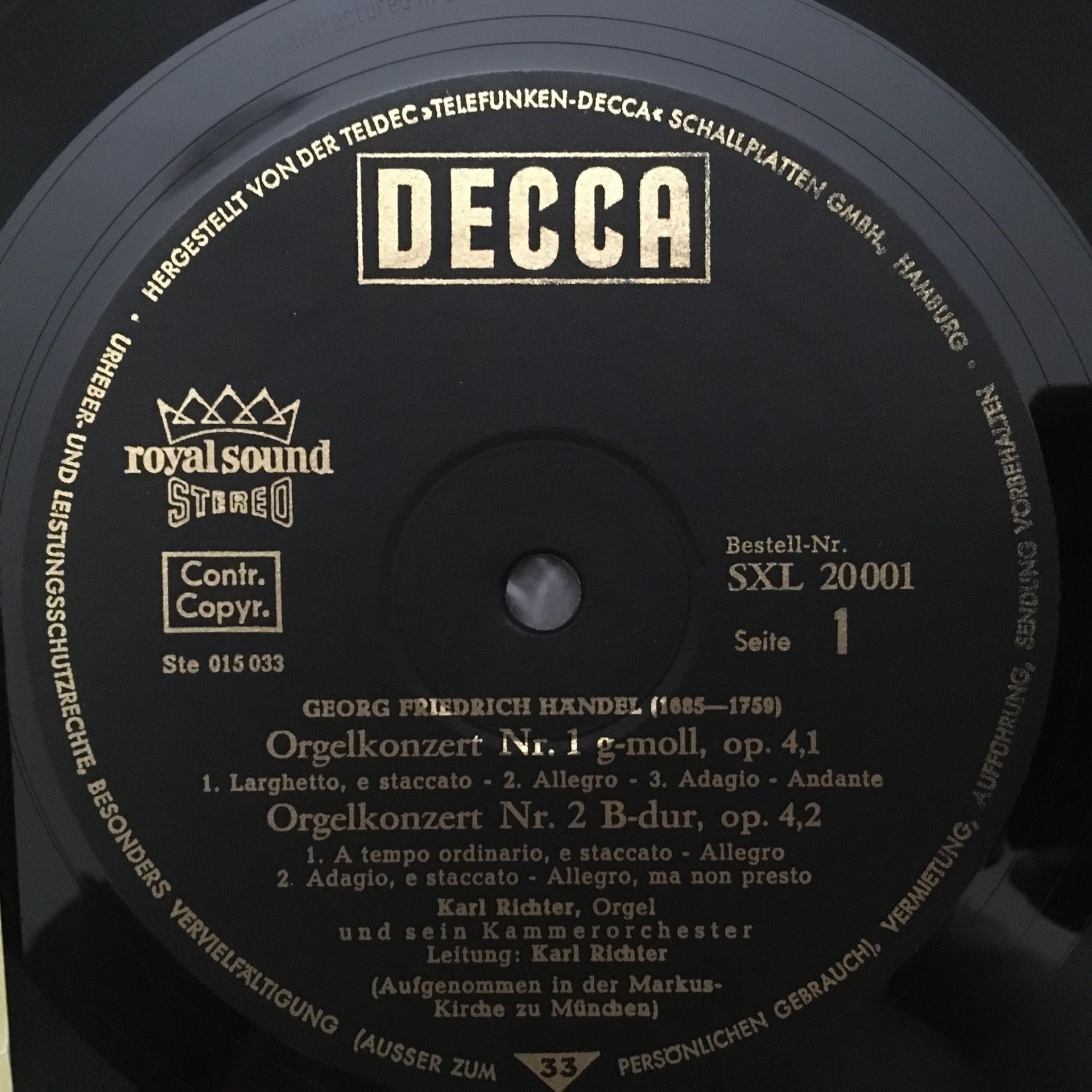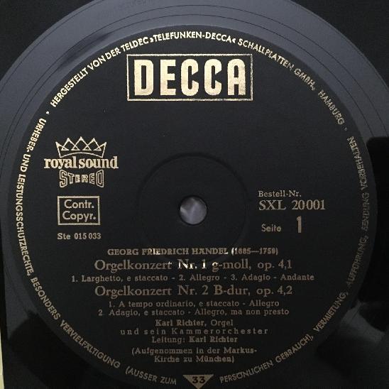 K811 Handel Organ Concertos No.1 & 2 & 3 & 4 Richter DECCA SXL 20 001 Stereo