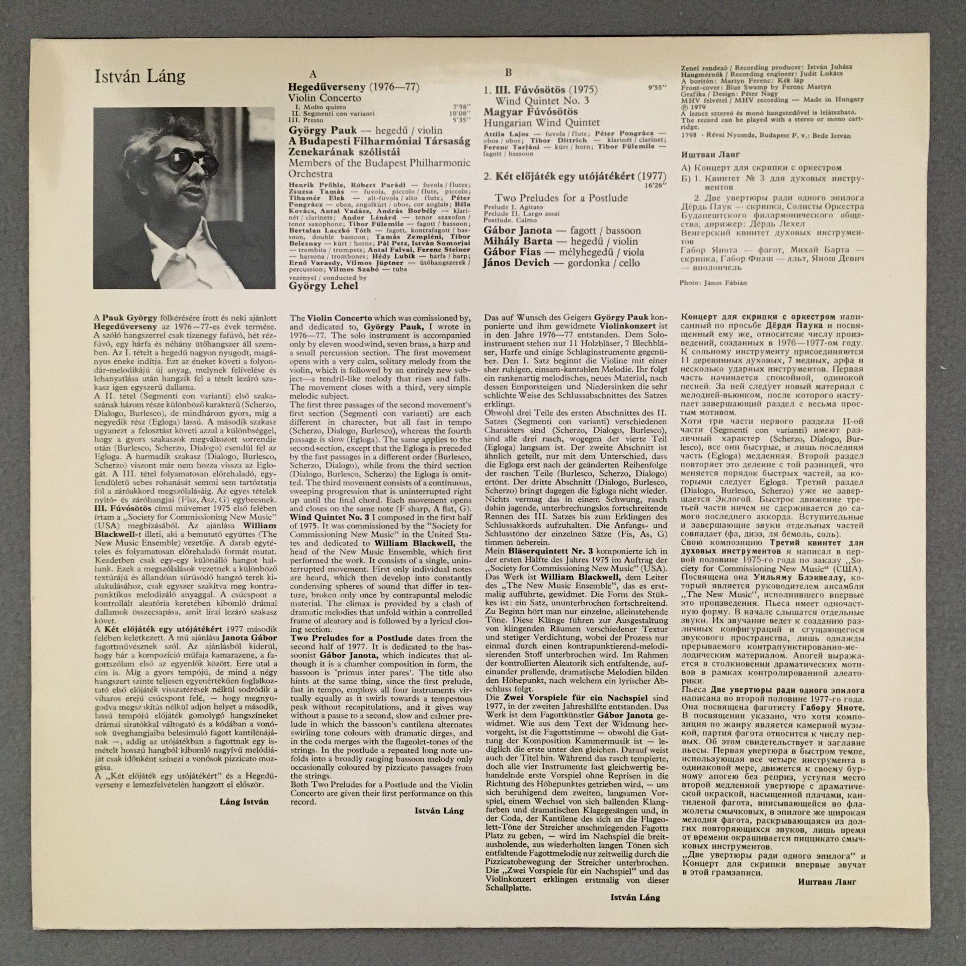 K821 Lang Violin Concerto Quintet Preludes Lehel Hungaroton SLPX 12051 Stereo