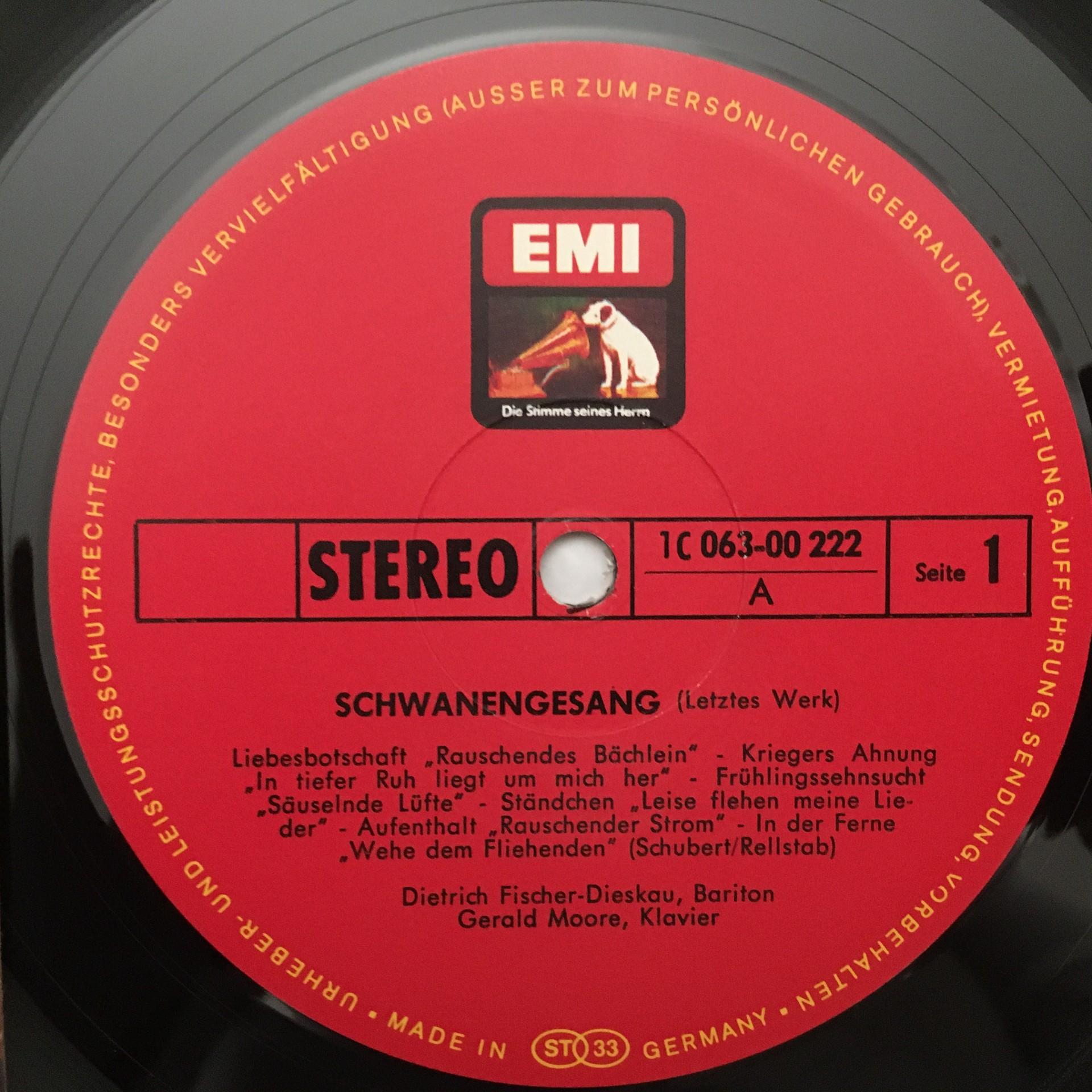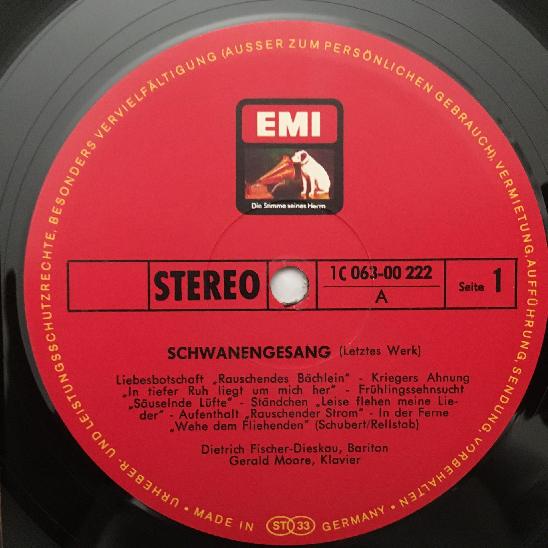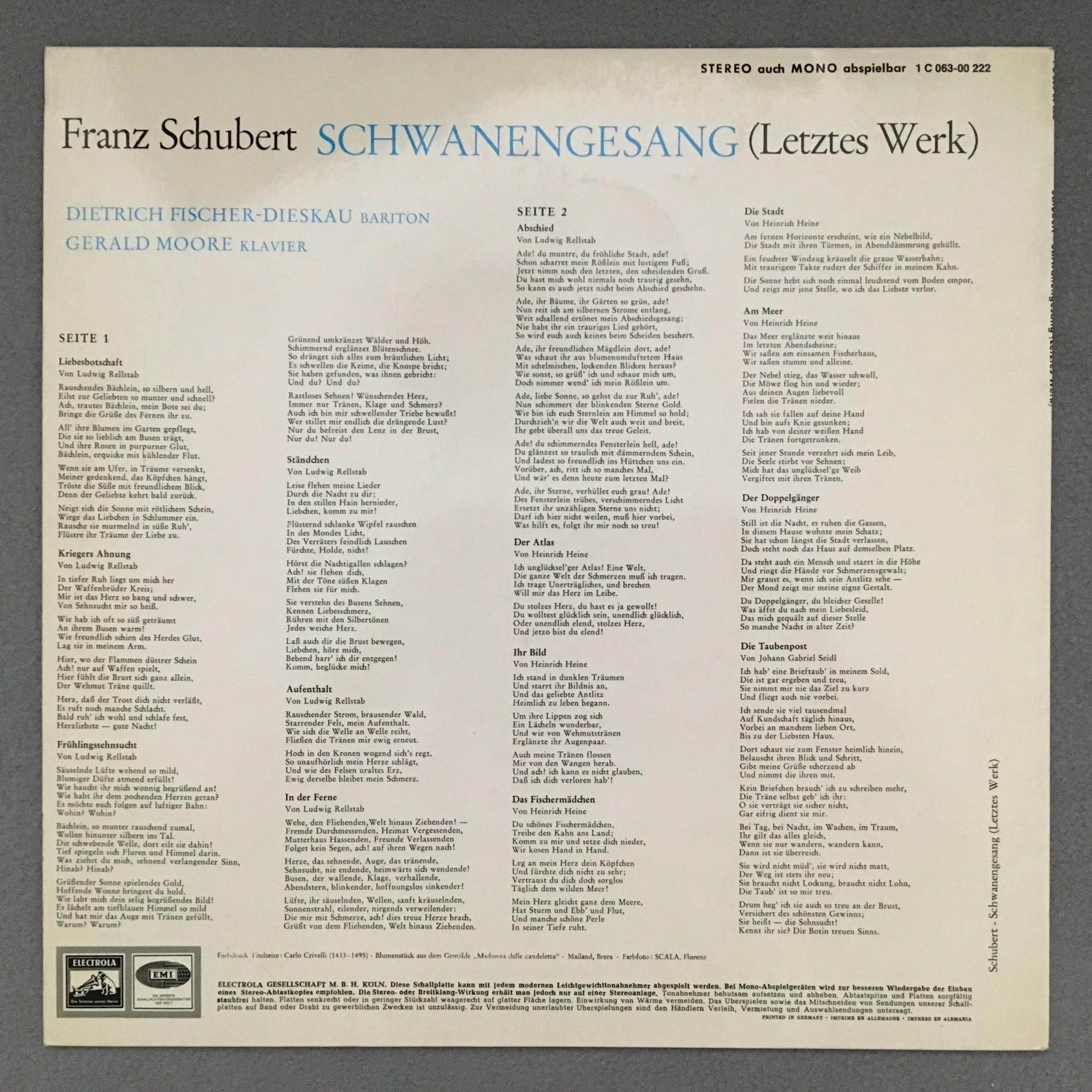 K822 Schubert Swan Singing Fischer-Dieskau Moore Piano EMI 1 C 063-00 222 Stereo