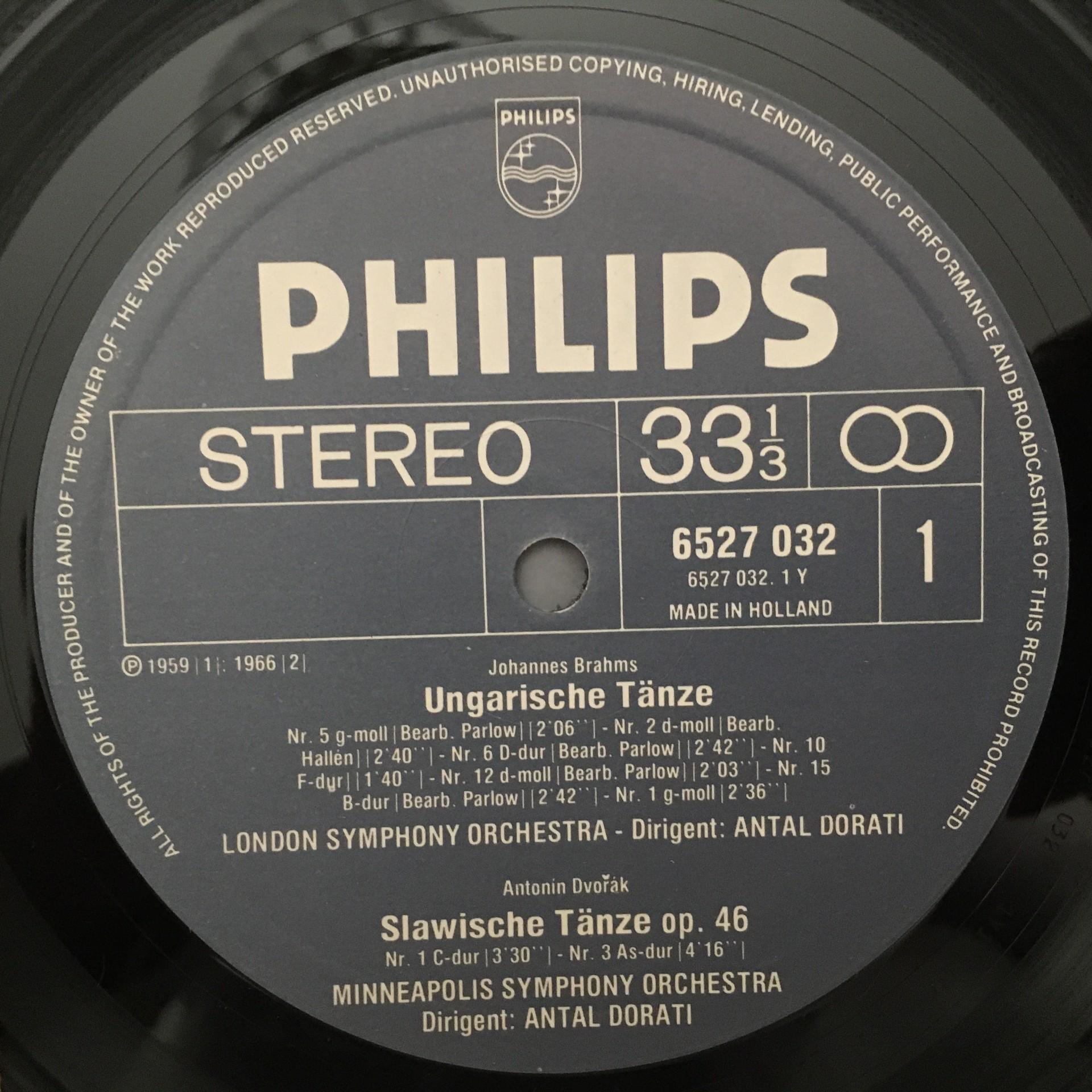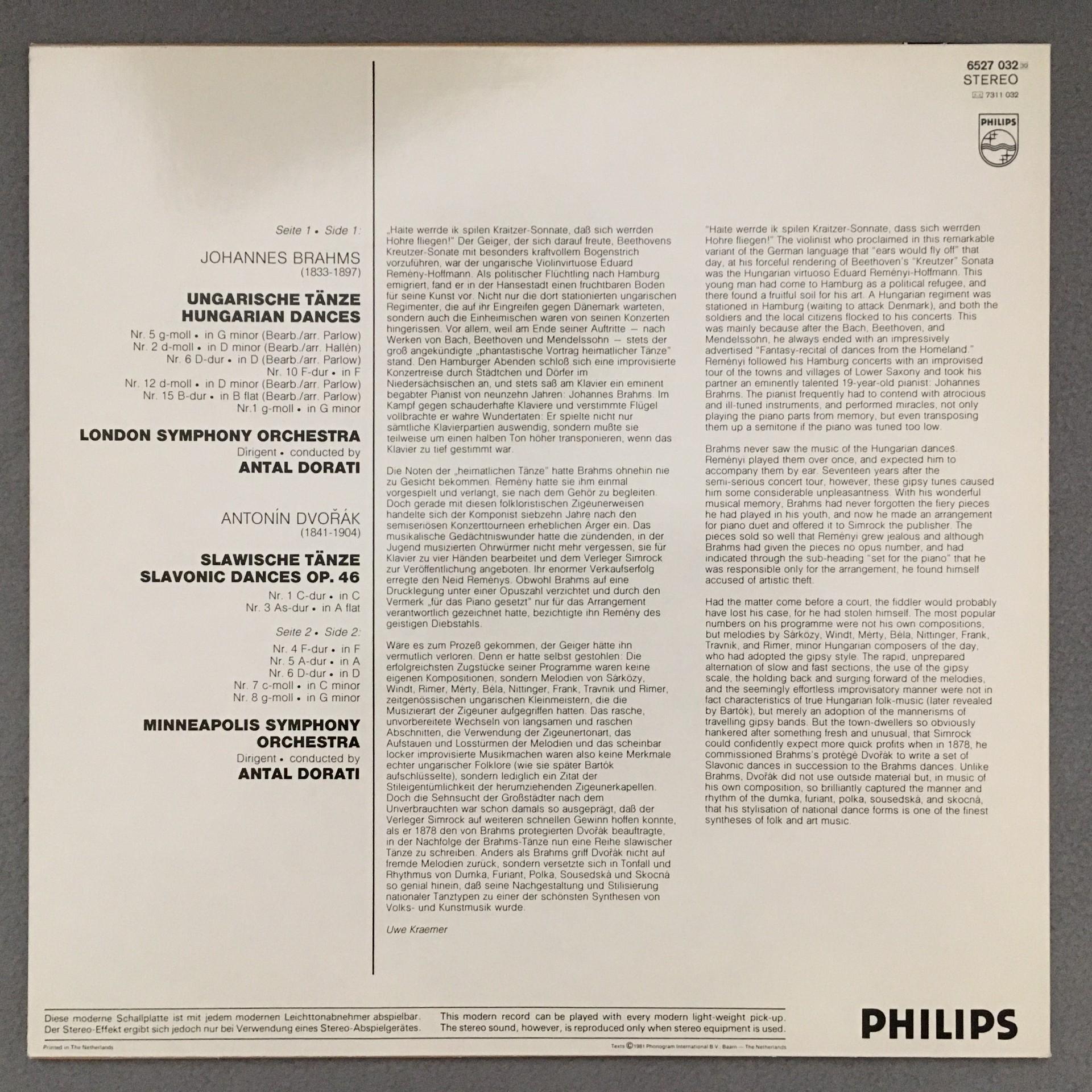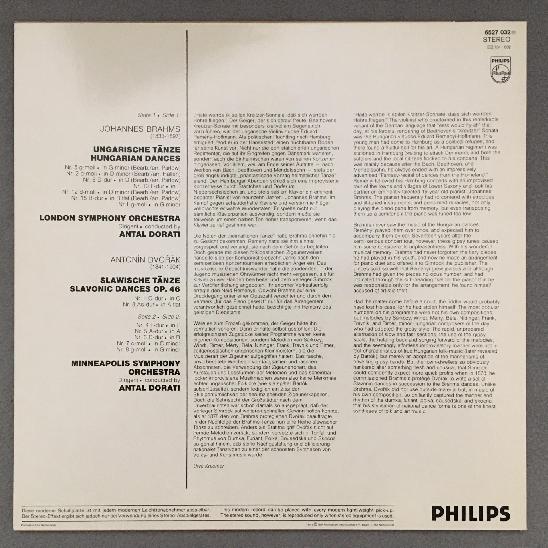 K833 Brahms Dvorak Hungarian & Slavic Dances Dorati Philips 6527 032 Stereo