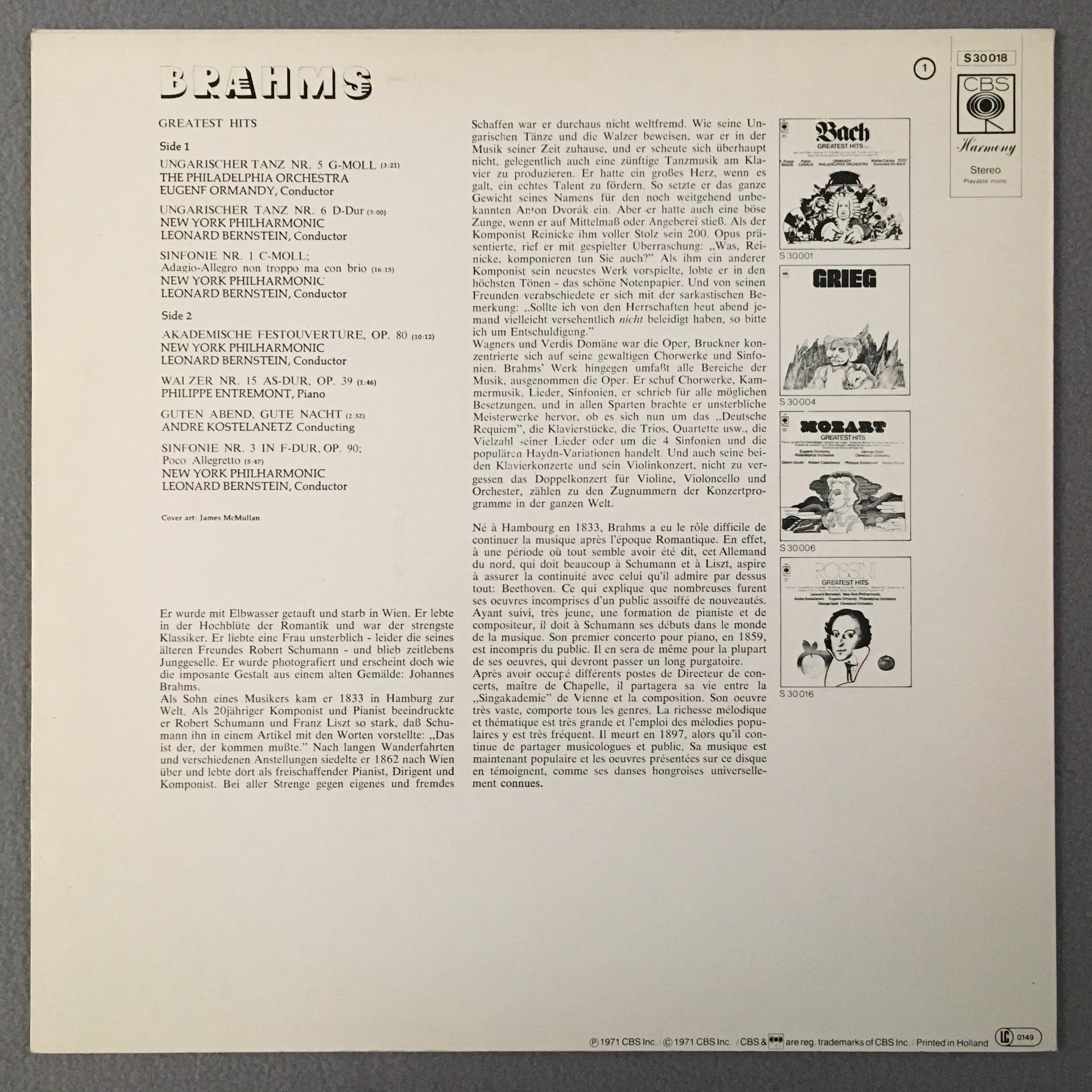 K843 Brahms Greatest Hits Bernstein Entremont Ormandy CBS S 30 018 Stereo