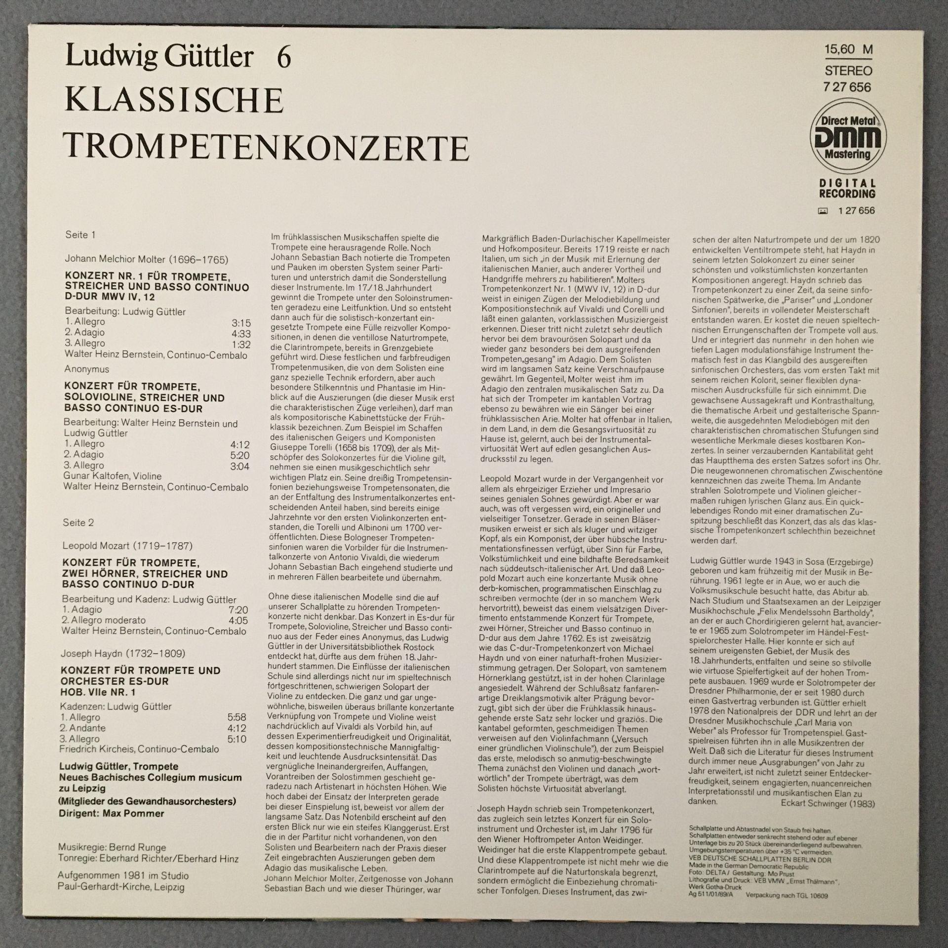 K852 Trumpet Concertos Mozart Haydn Güttler Pommer Eterna 7 27 656 Digital St