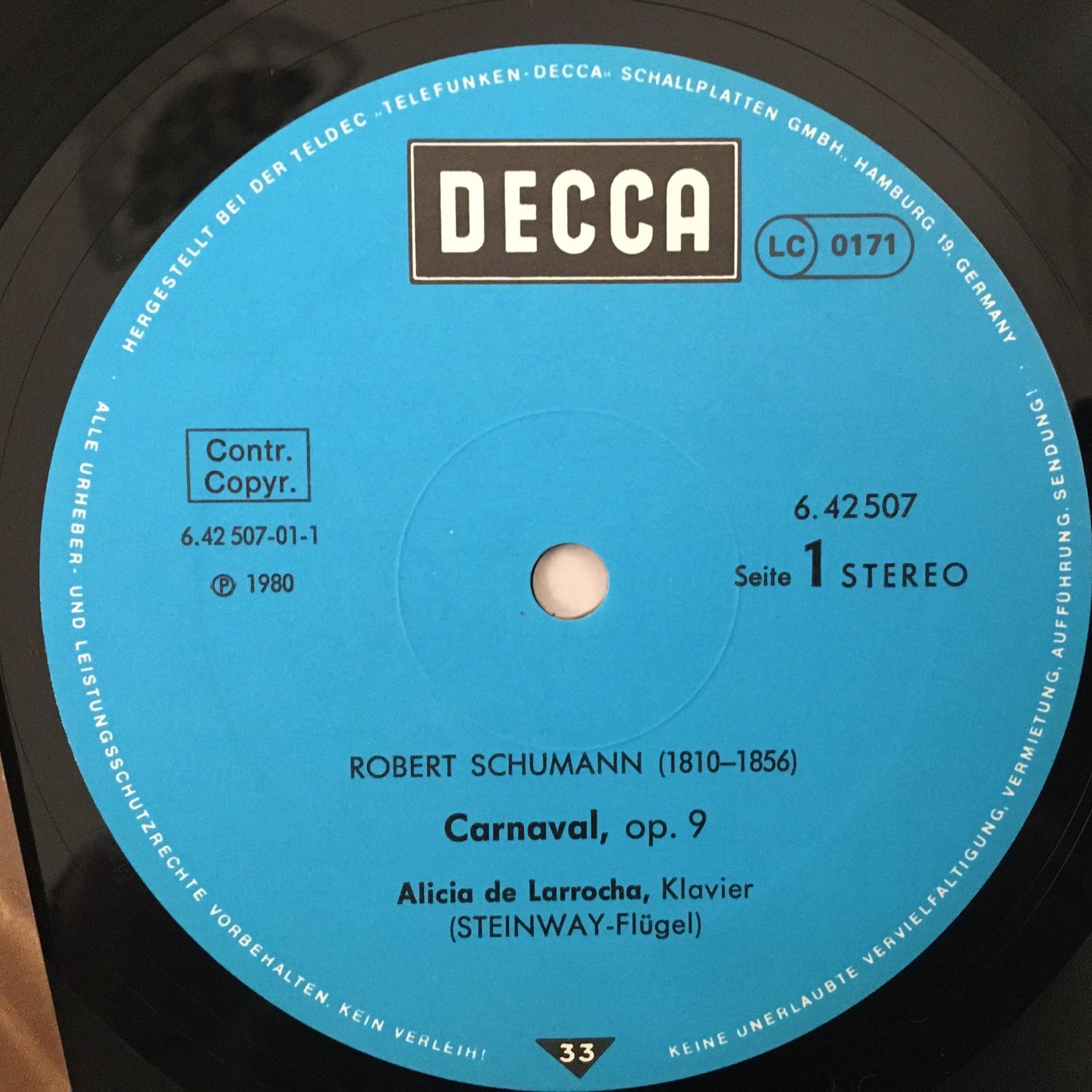 K855 Schumann Carnaval Schubert Sonata de Larrocha DECCA 6.42507 AW Stereo
