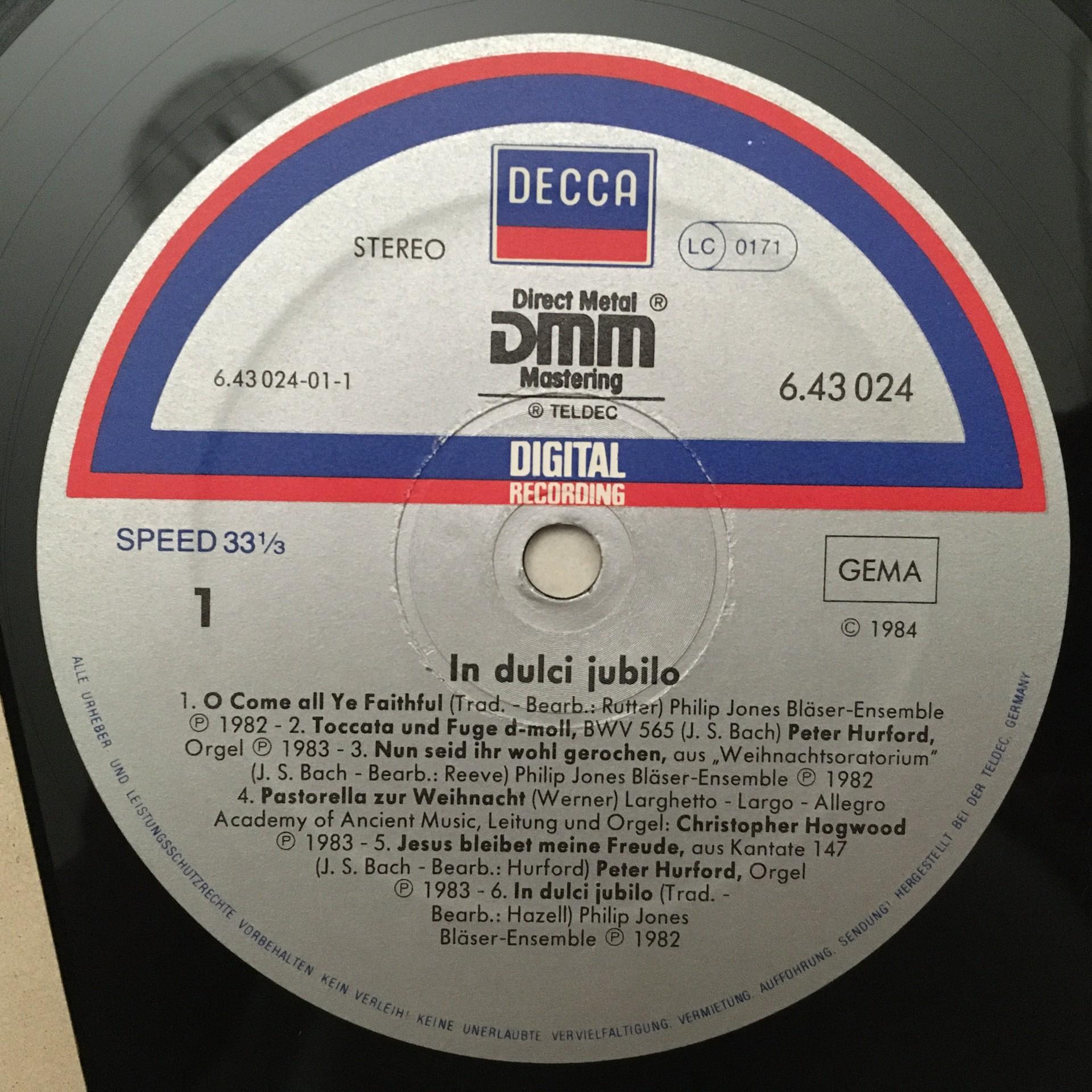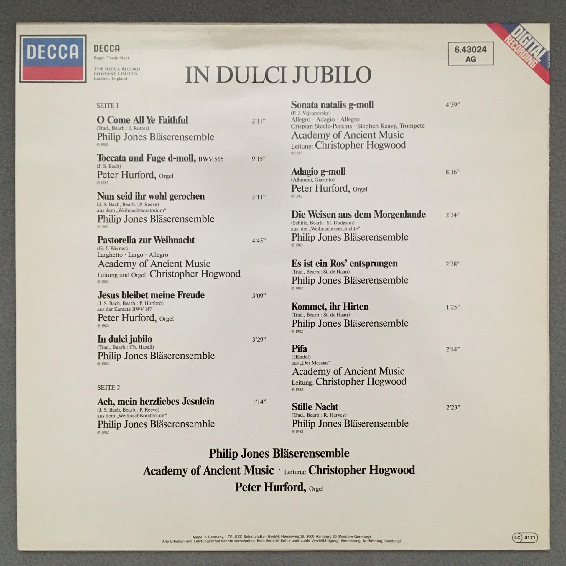 K857 In Dulci Jubilo Hogwood Hurford Organ DECCA 6.43024 AG Digital Stereo