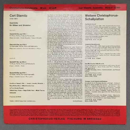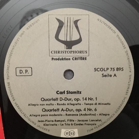K866 Stamitz Quartets Rampal Pierlot Lancelot Christophorus SCGLP 75 895 Stereo