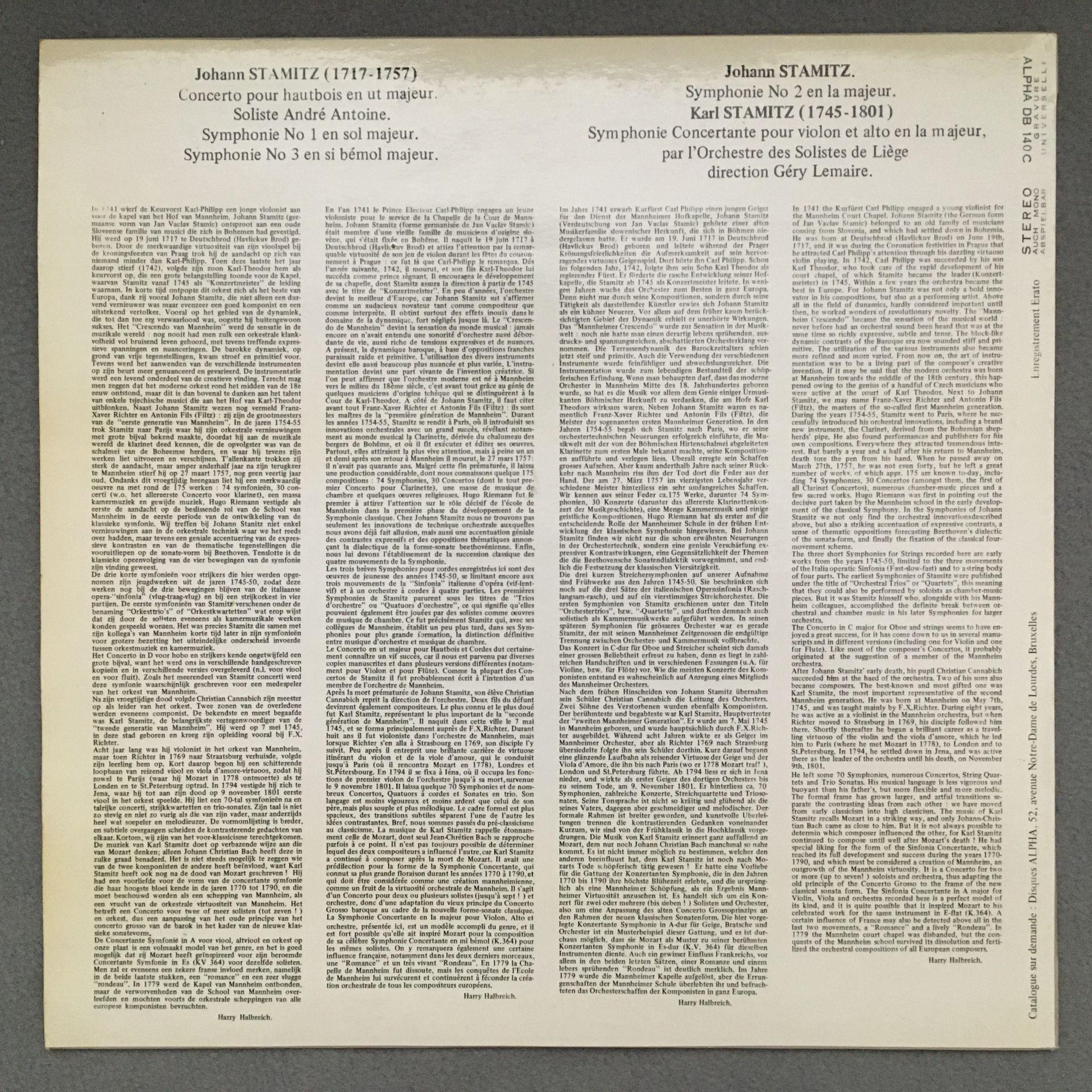 K869 J. & K. Stamitz Concerto Symphonies Antoine Lemaire Alpha DB 140 C