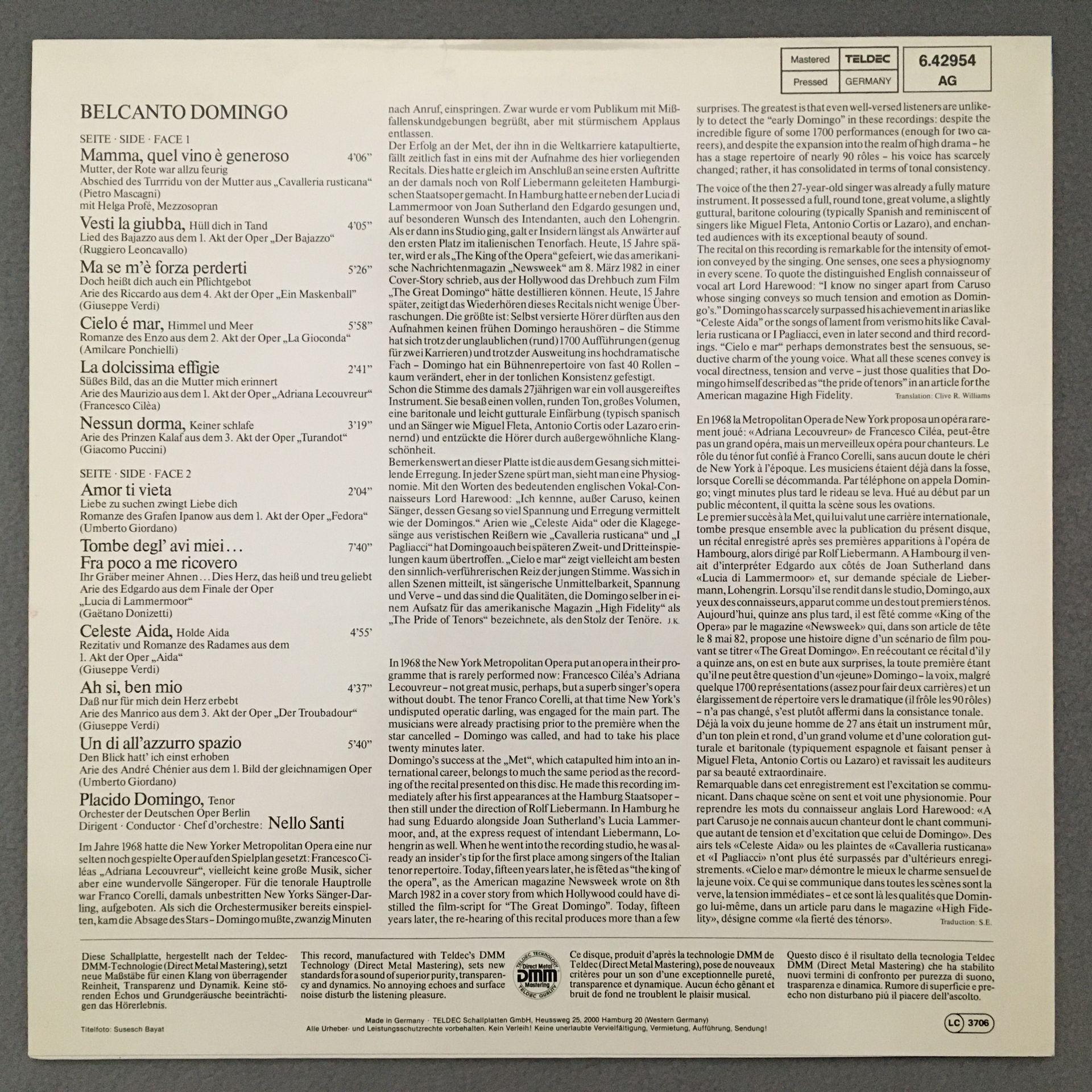 K891 Belcanto Domingo Arias Songs Santi Teldec 6.42954 AG Digital Stereo
