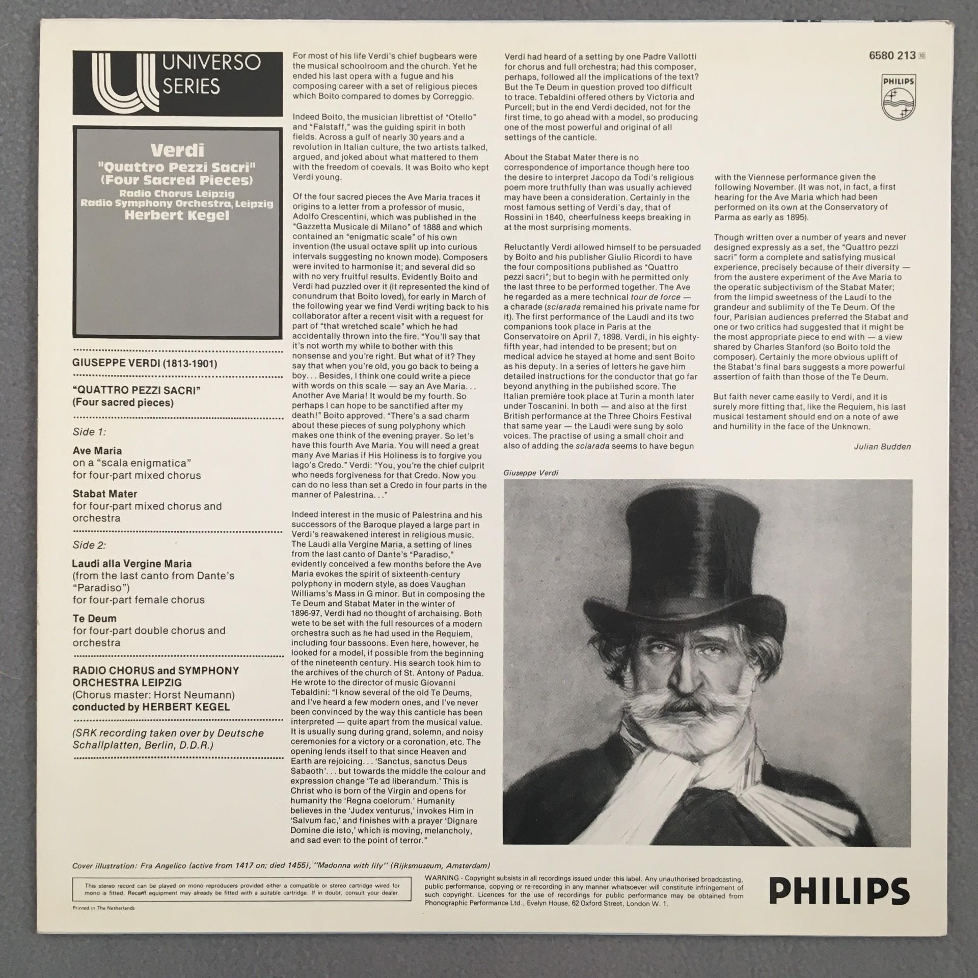 K907 Verdi 4 Sacred Pieces Kegel Philips 6580 213 Stereo