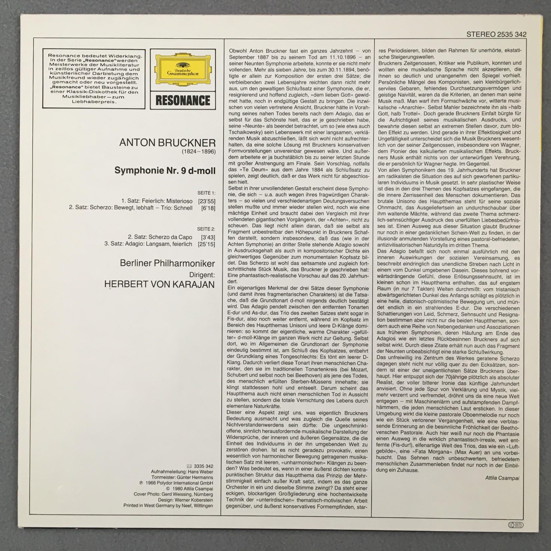 K910 Bruckner Symphony No.9 Karajan BPO DGG 2535 342 Stereo