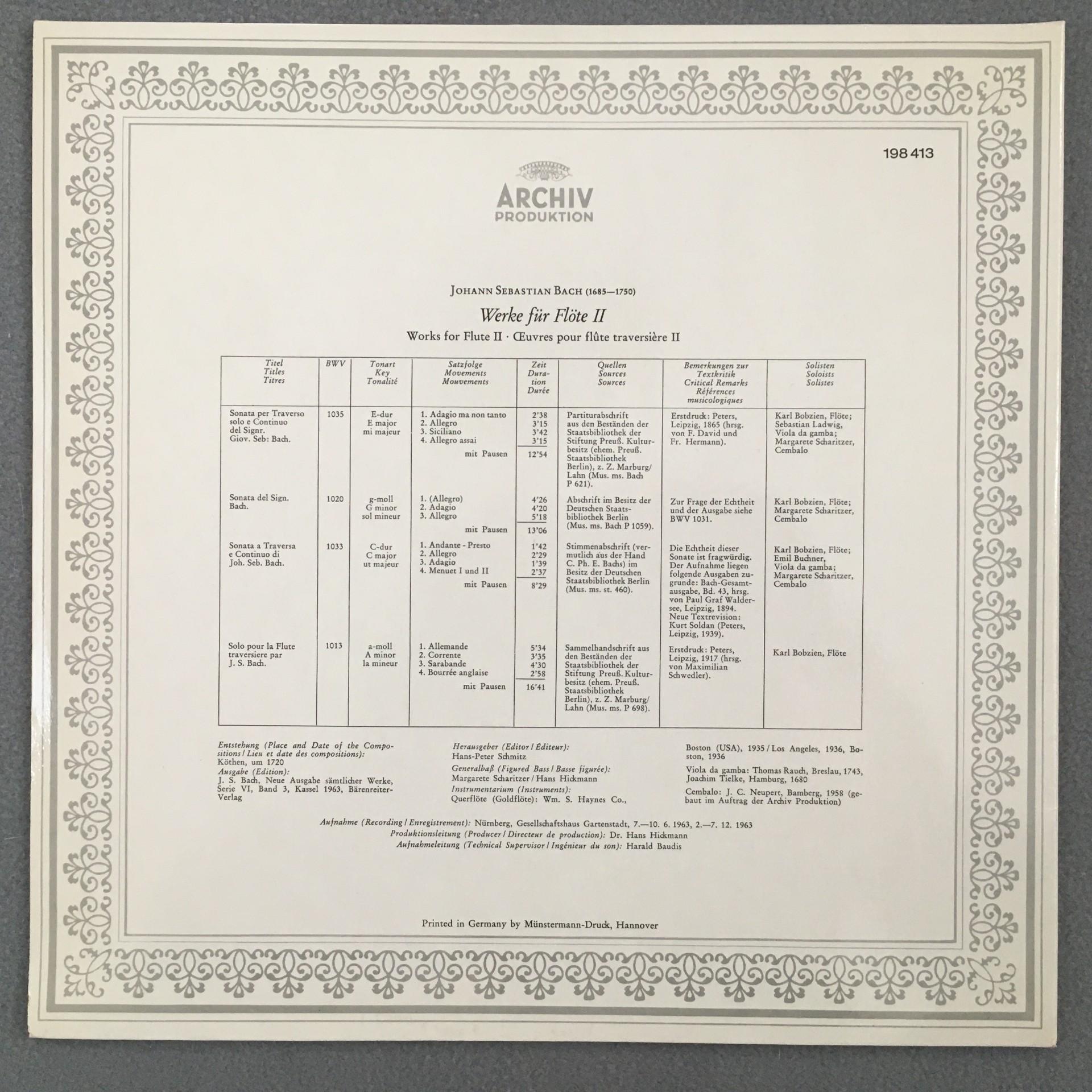 K913 Bach Works for Flute II Bobzien Scharitzer Archiv DGG 198 413 Stereo