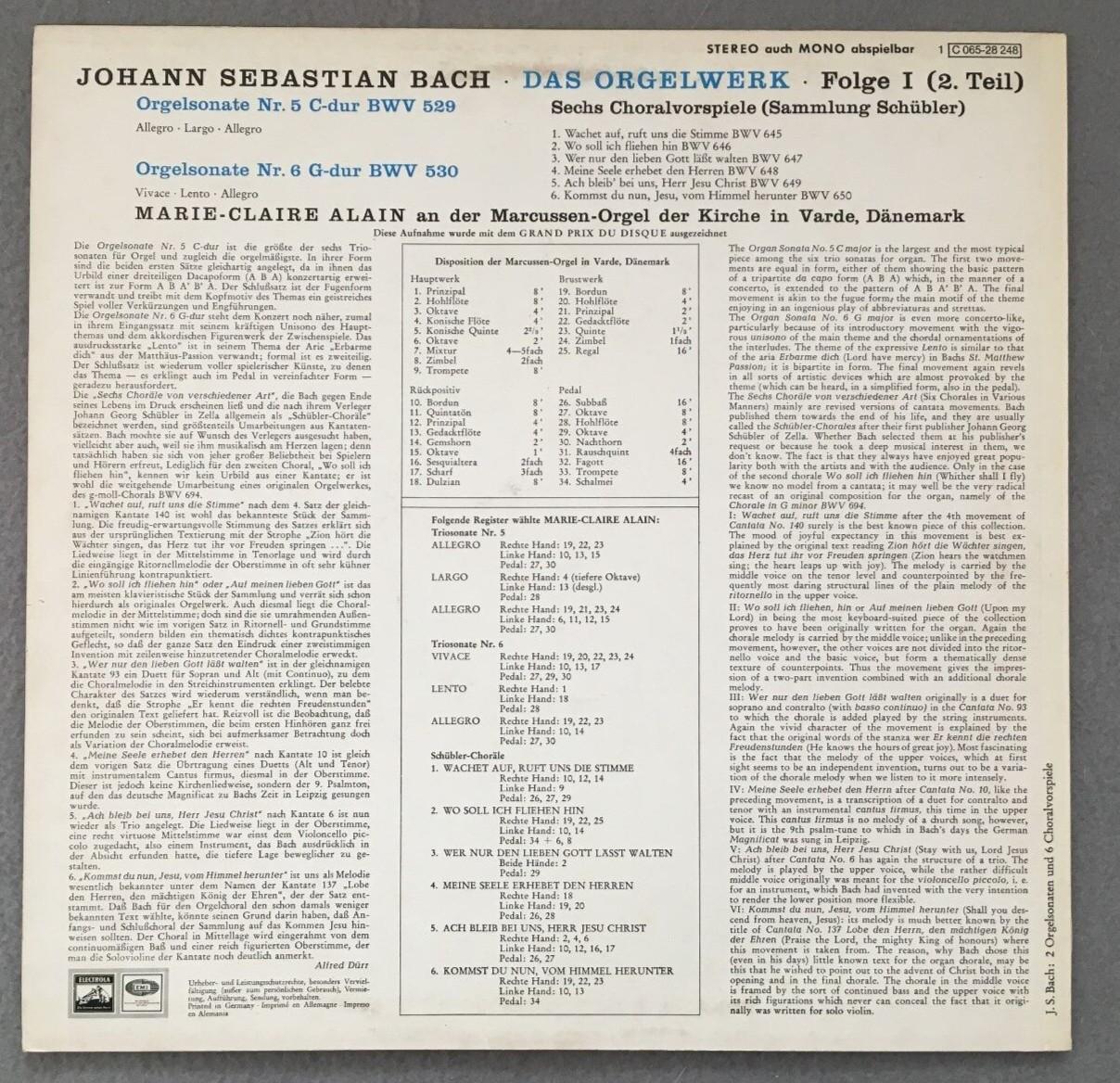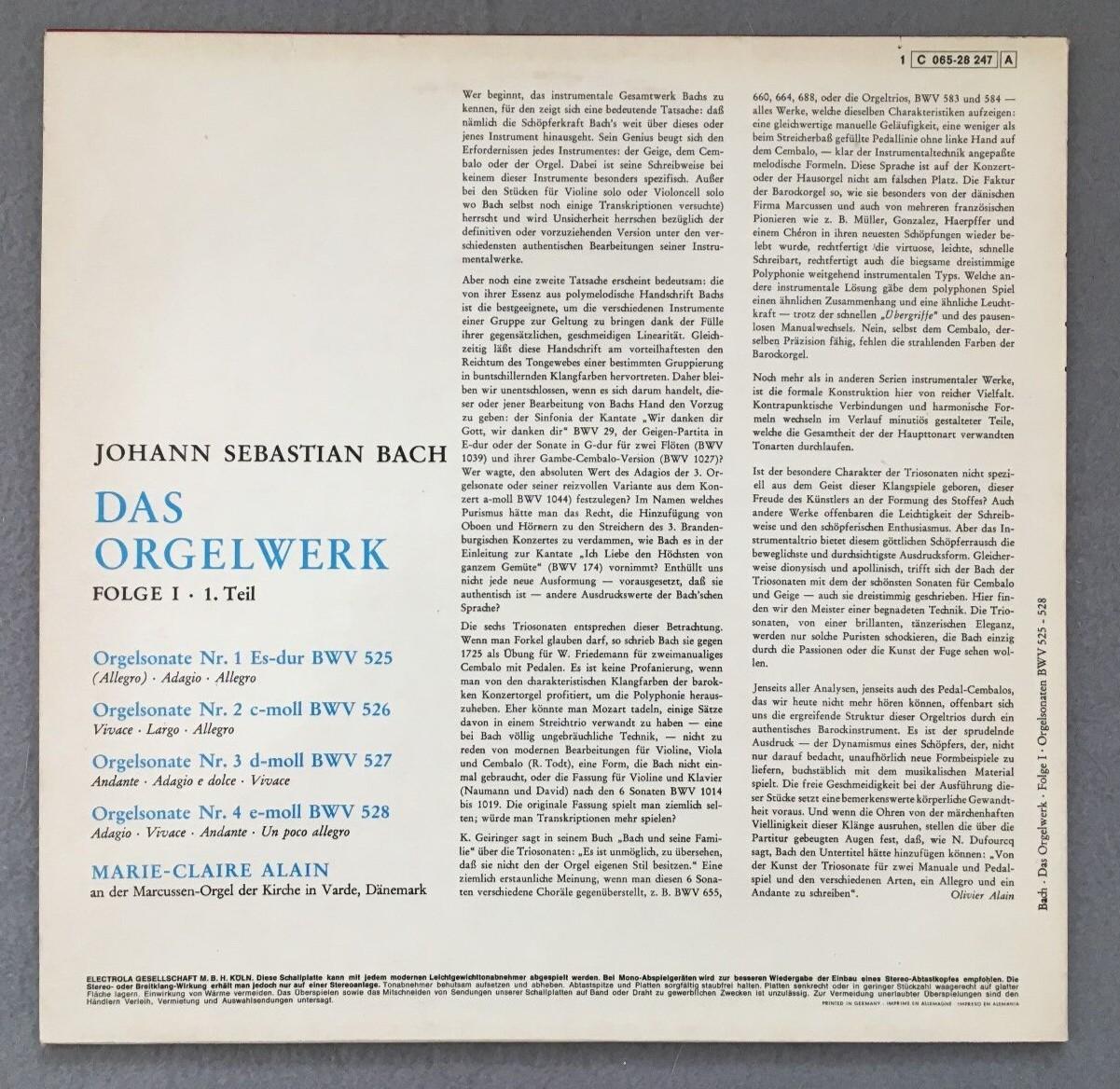 P221 Bach The Organ Work Vol.1 Alain 2LP EMI 1C 065-28 247 Stereo