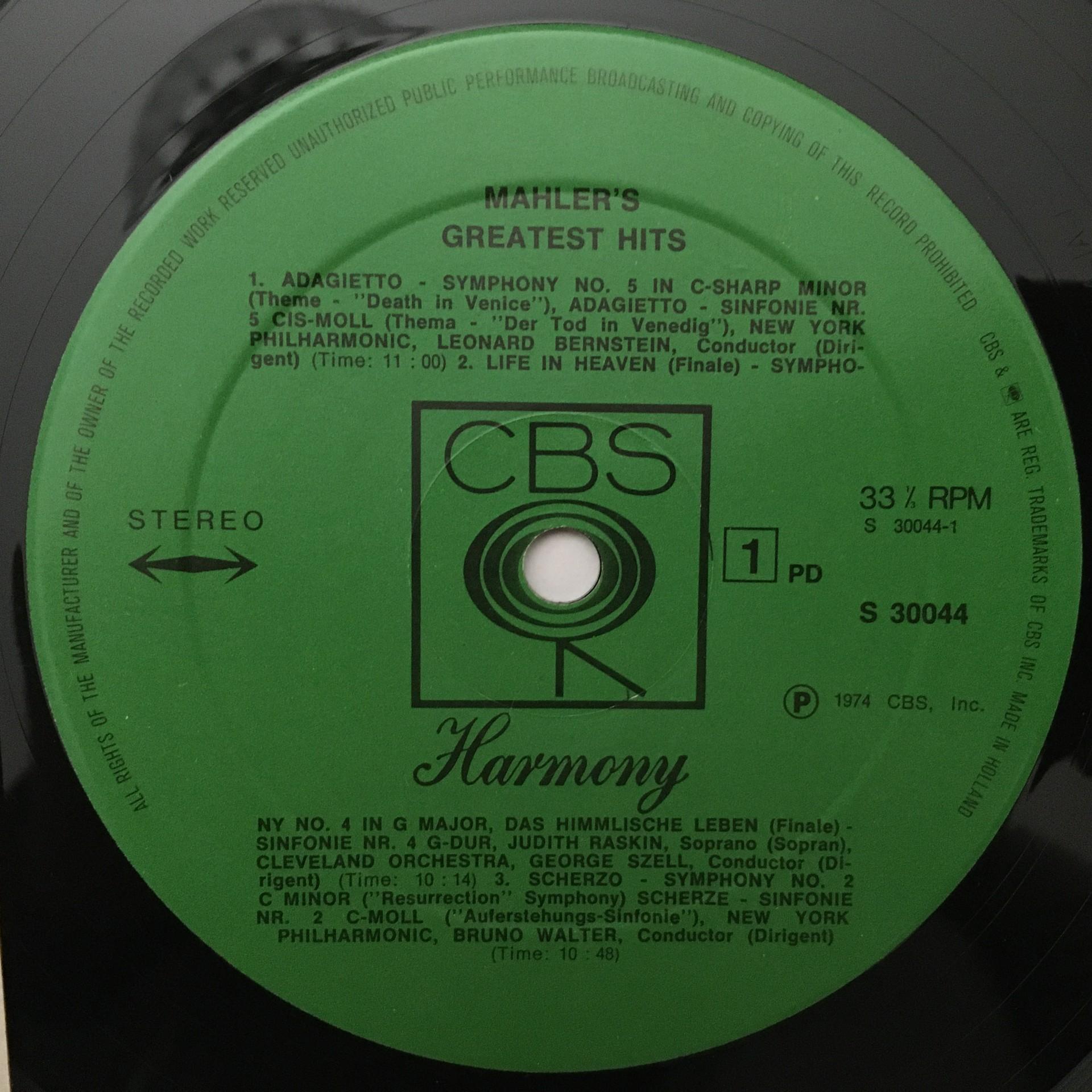 K928 Mahler Greatest Hits Bernstein Walter Szell CBS S 30 044 Stereo