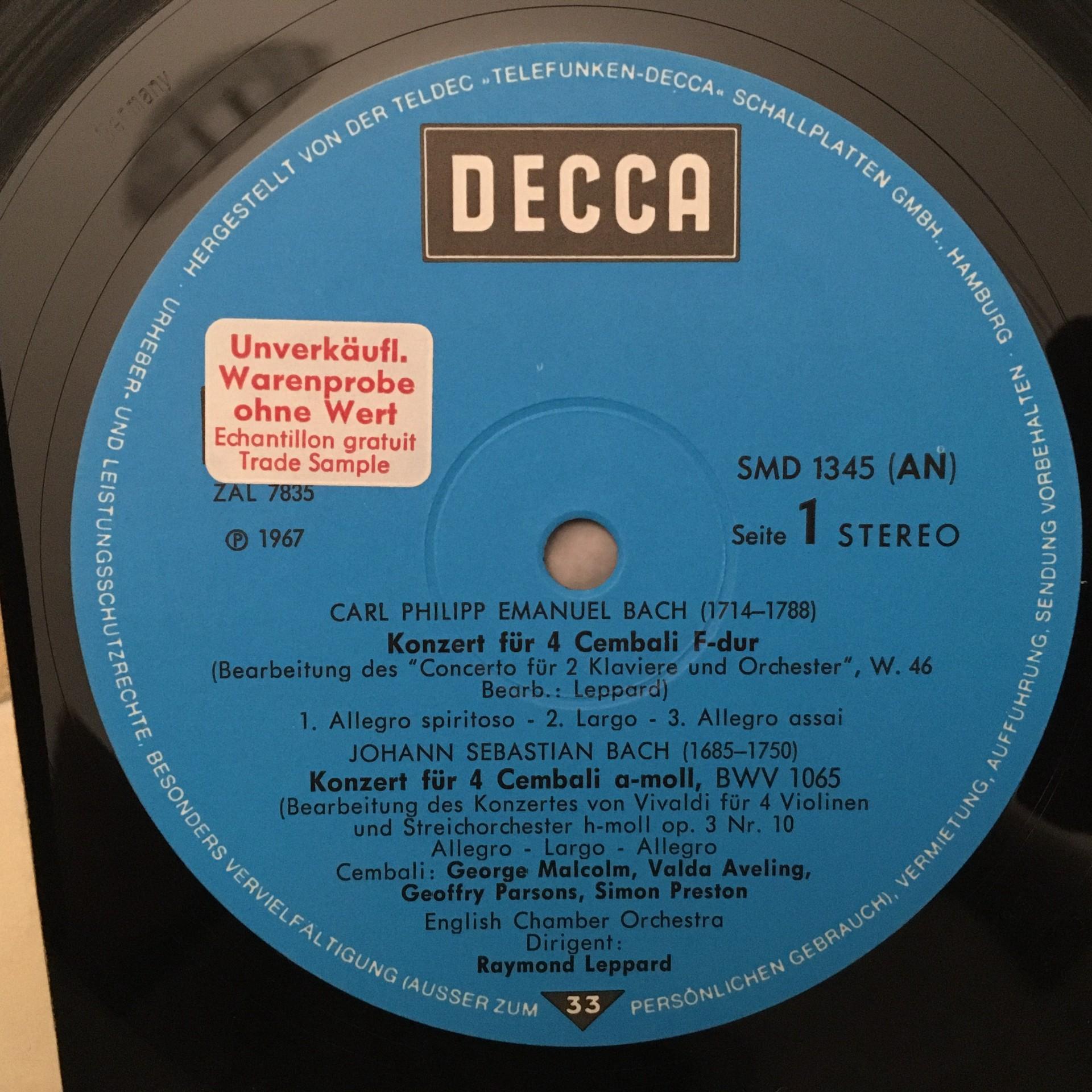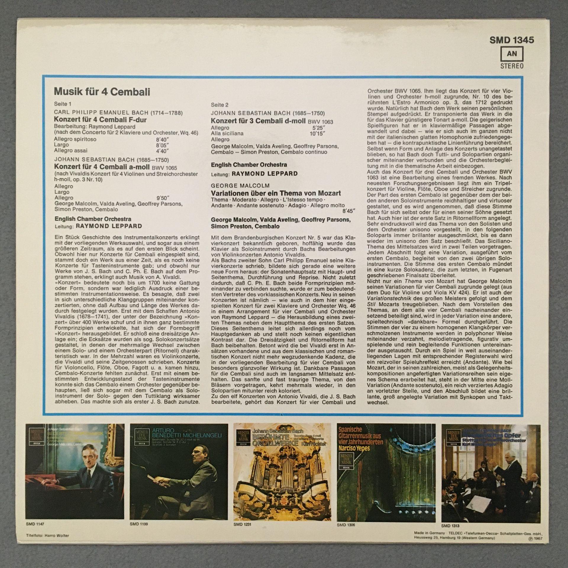 K931 Music for 4 Cembalos Bach Malcolm Leppard DECCA SMD 1345 Stereo PROMO