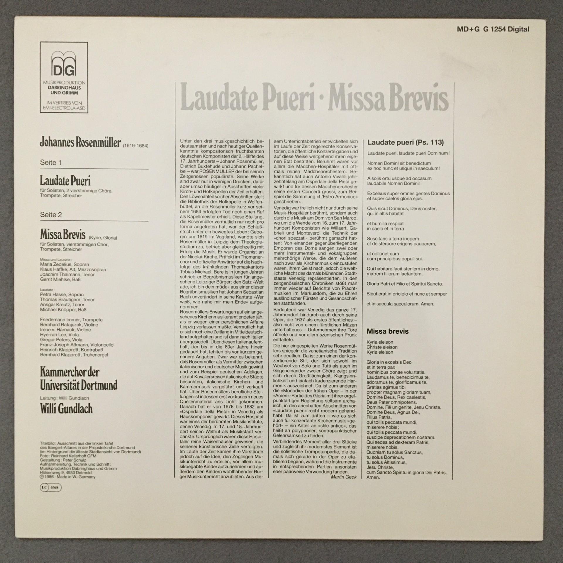 K934 Rosenmüller Missa Brevis Laudate Pueri Gundlach DG MD + G G1254 Digital St
