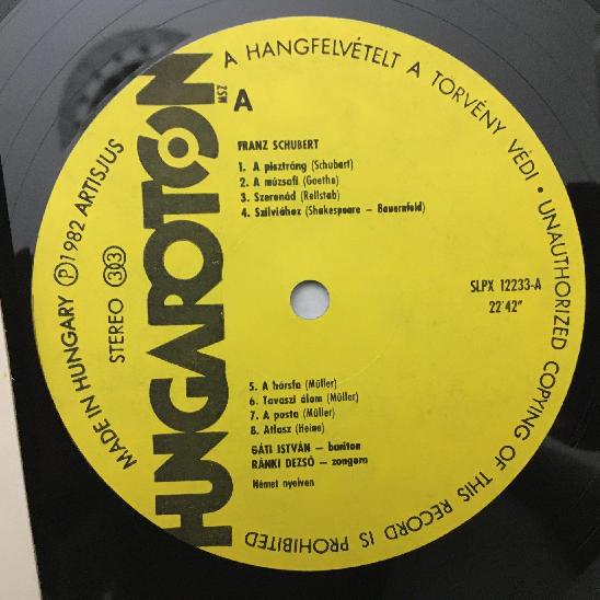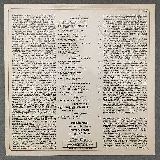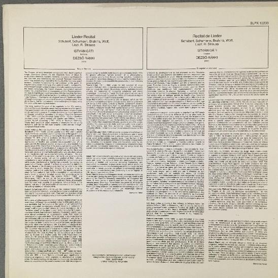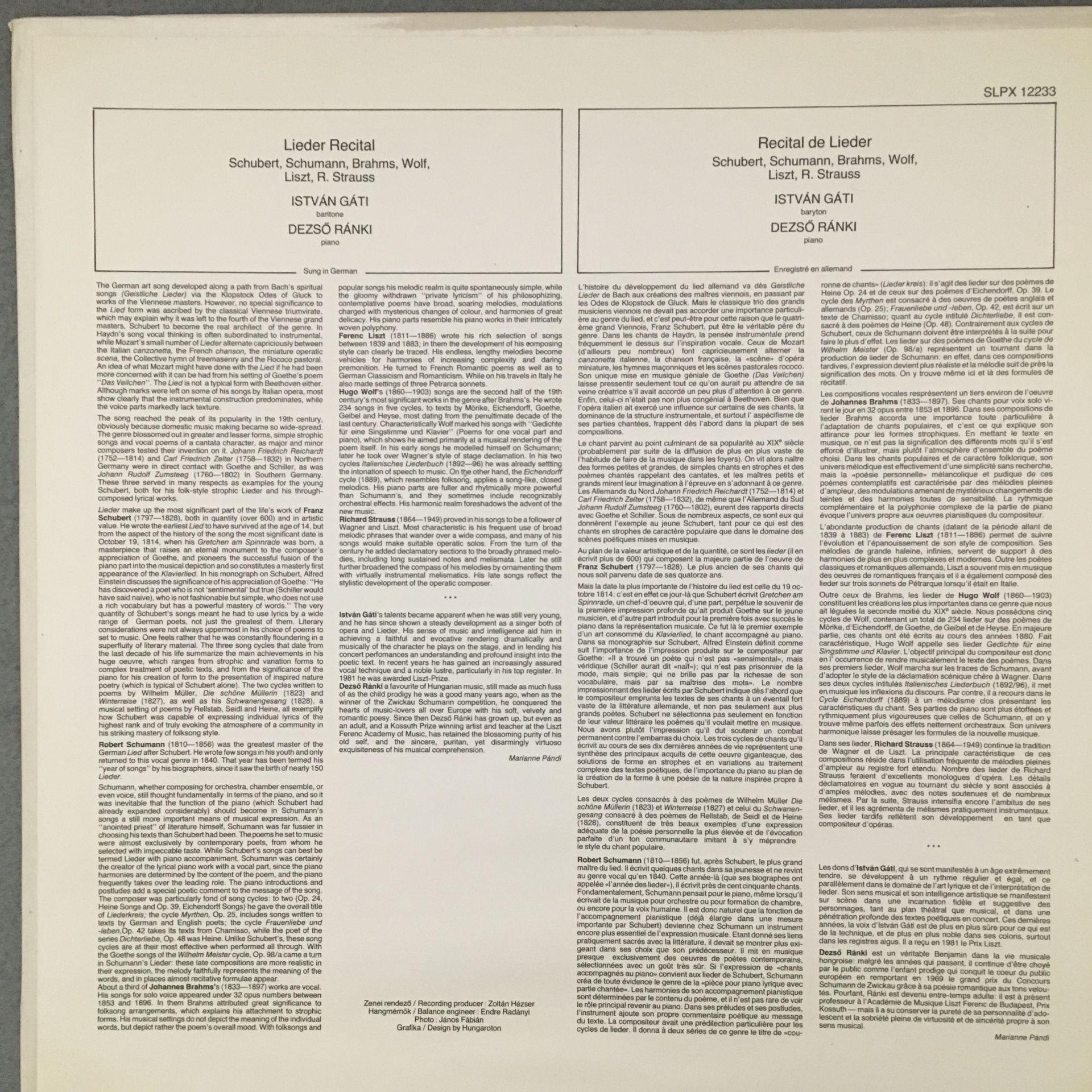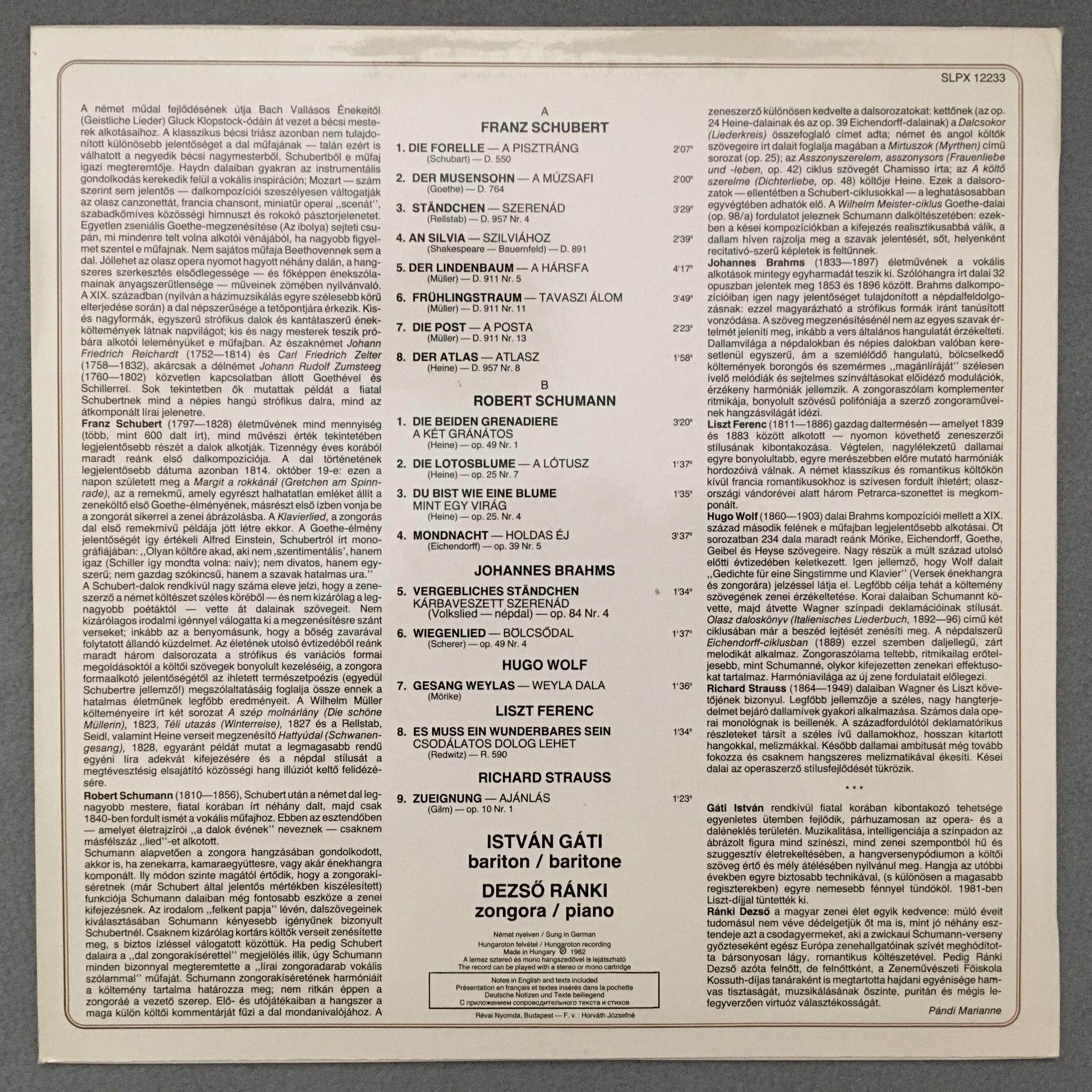 K938 Schubert Schumann Brahms Songs Gati Ranki Hungaroton SLPX 12233 Stereo