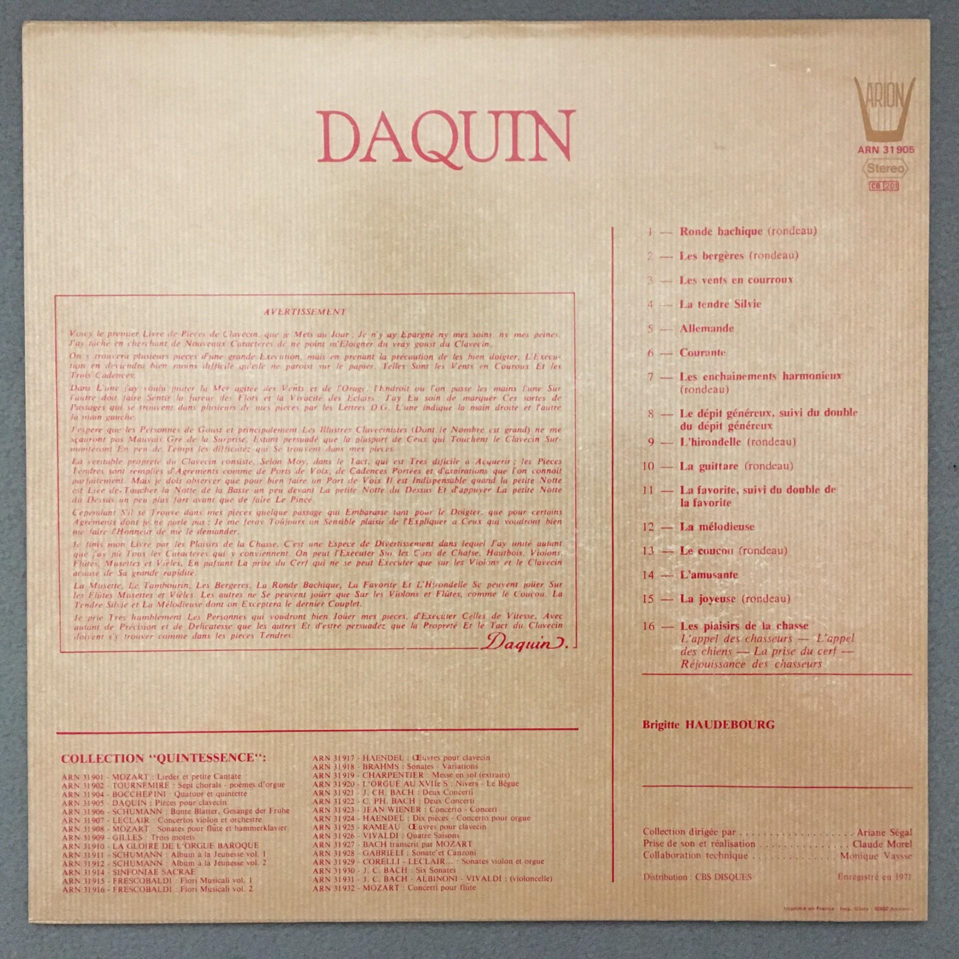 K942 Daquin Harpsichord Pieces Haudebourg Arion ARN 31 905 Stereo