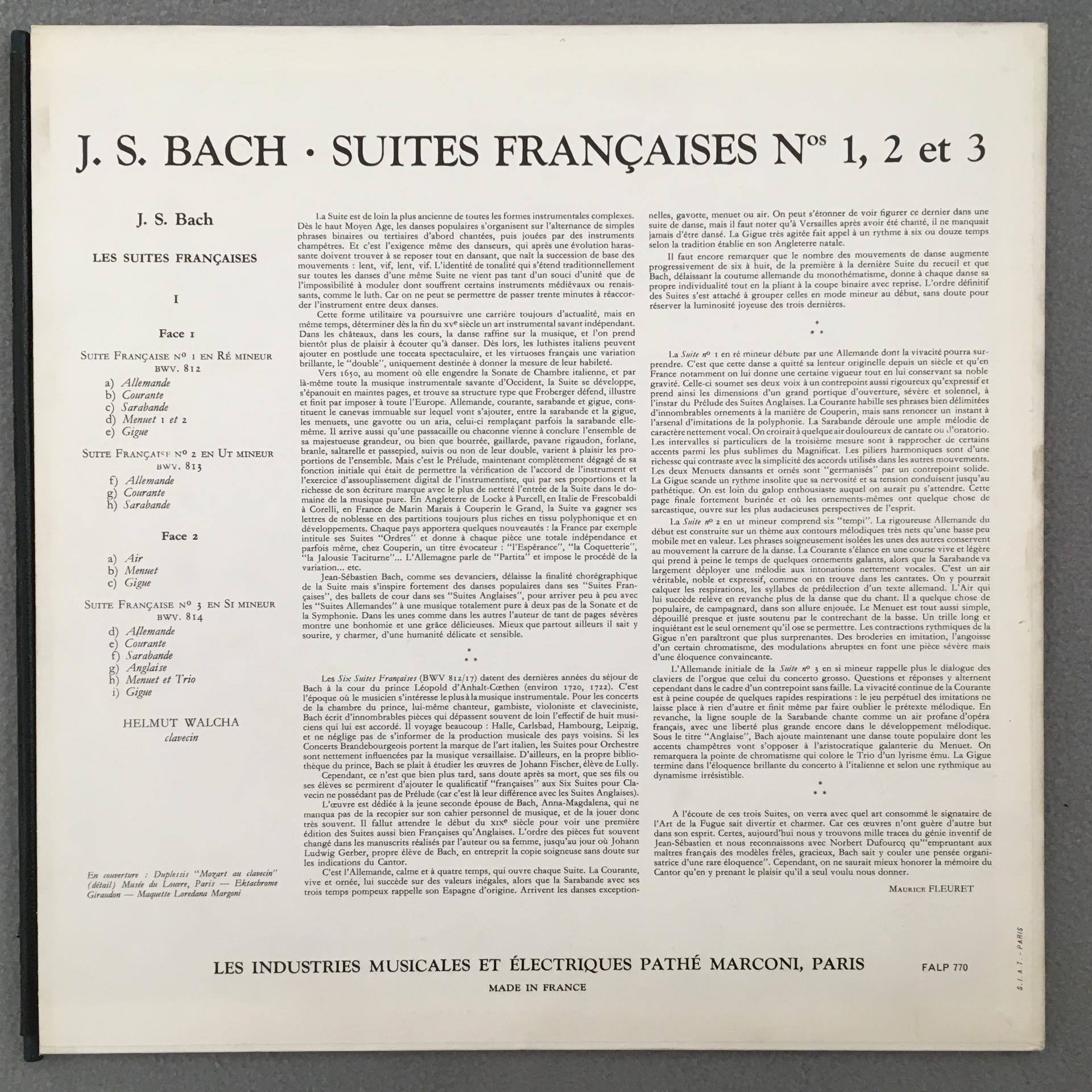 K951 Bach French Suites Walcha Harpsichord La Voix de Son Maitre FALP 770