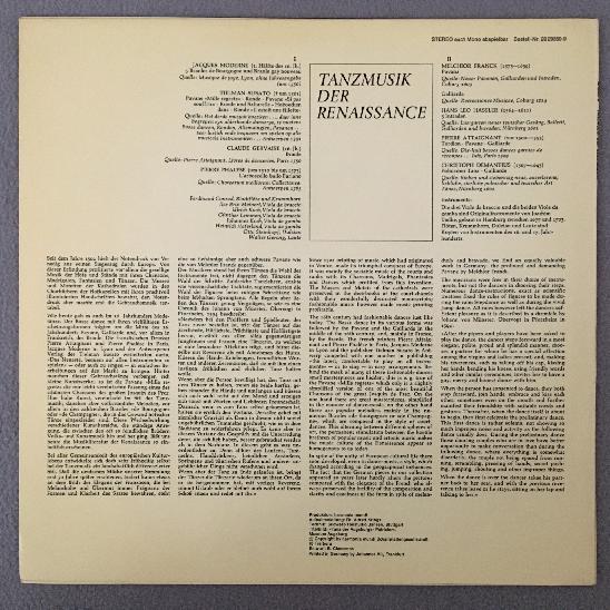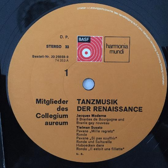 P277 Dance Music Renaissance Conrad Koch Collegium Aureum HM 20 29359-9 Stereo