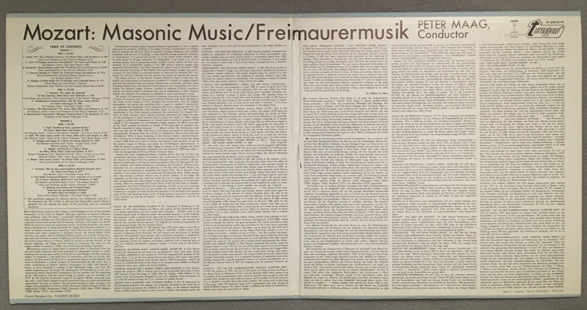 P284 Mozart Complete Masonic Music Maag 2LP Turnabout TV 34213-14 Stereo