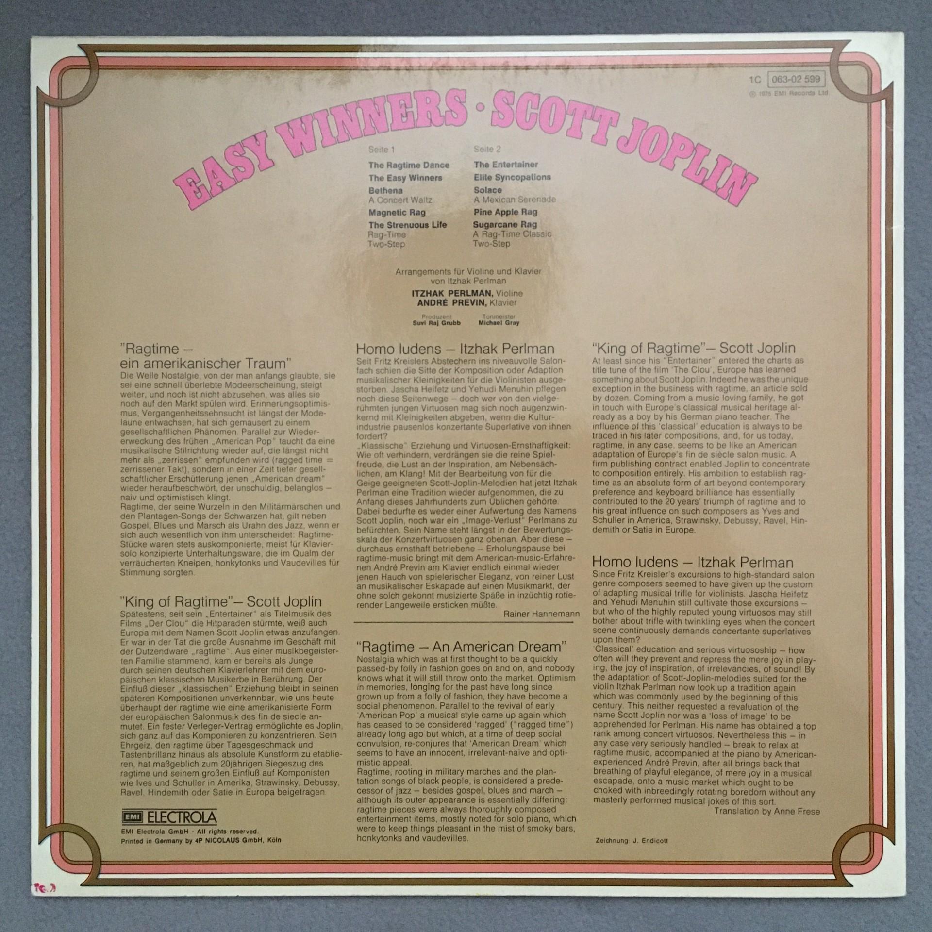 K959 Scott Joplin Easy Winners Perlman Previn EMI 1C 063-02 599 Stereo