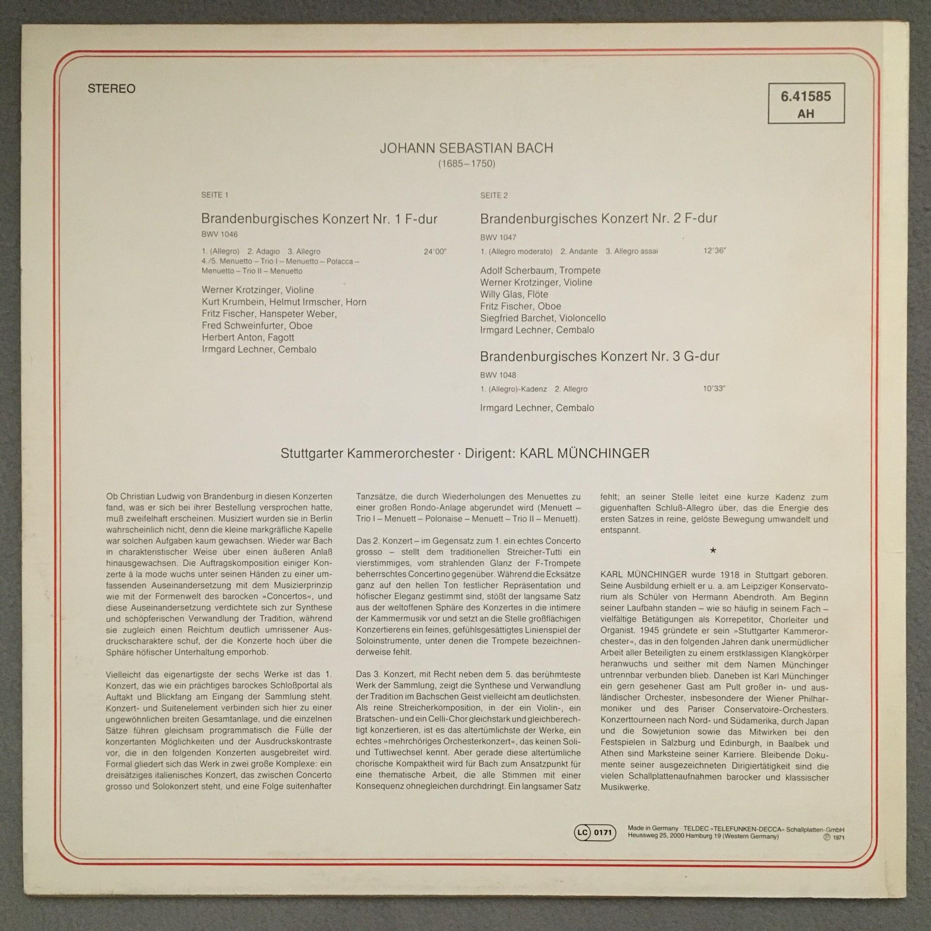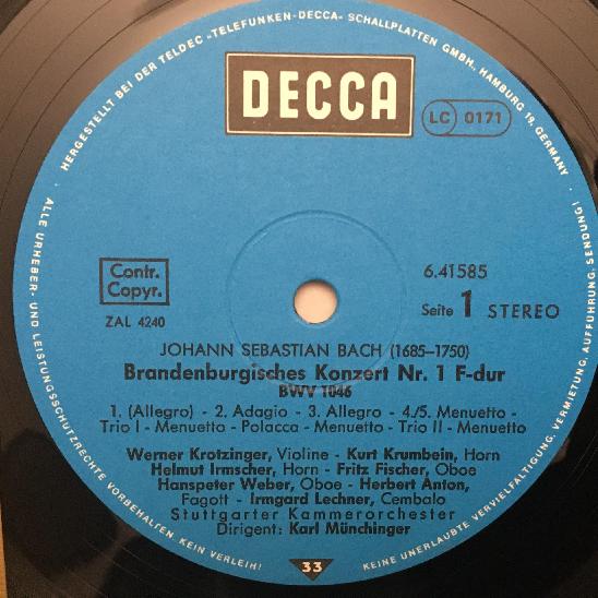 K961 Bach Brandenburg Concertos No.1-3 Munchinger DECCA 6.41585 AH Stereo
