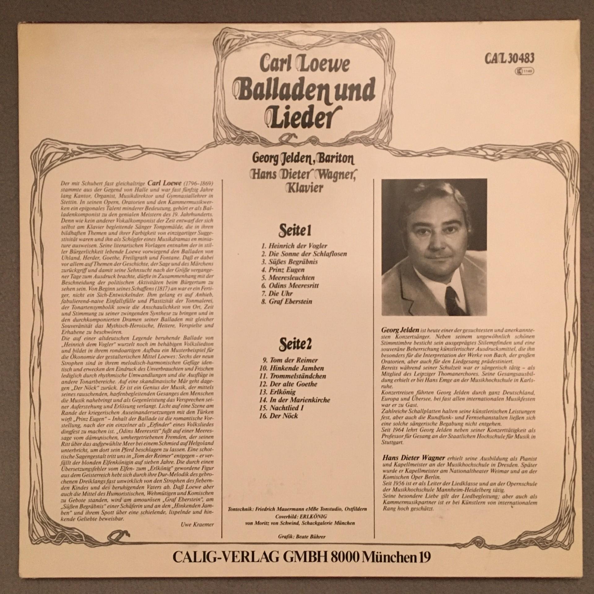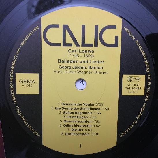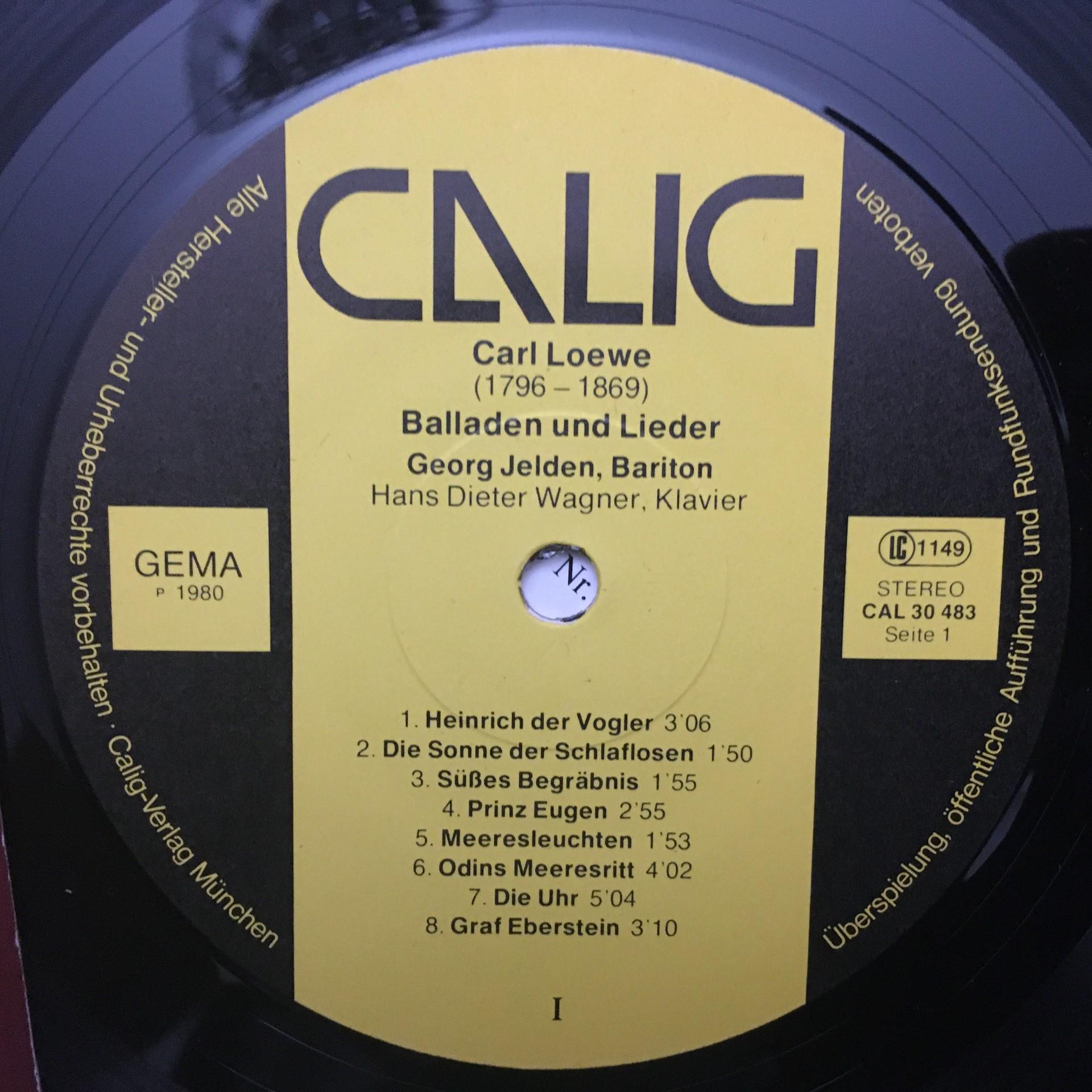 K964 Loewe Ballades & Songs Jelden Wagner Piano Calig CAL 30 483 Stereo