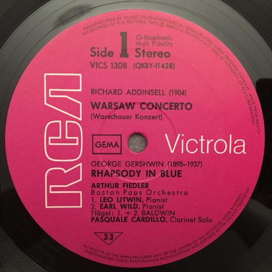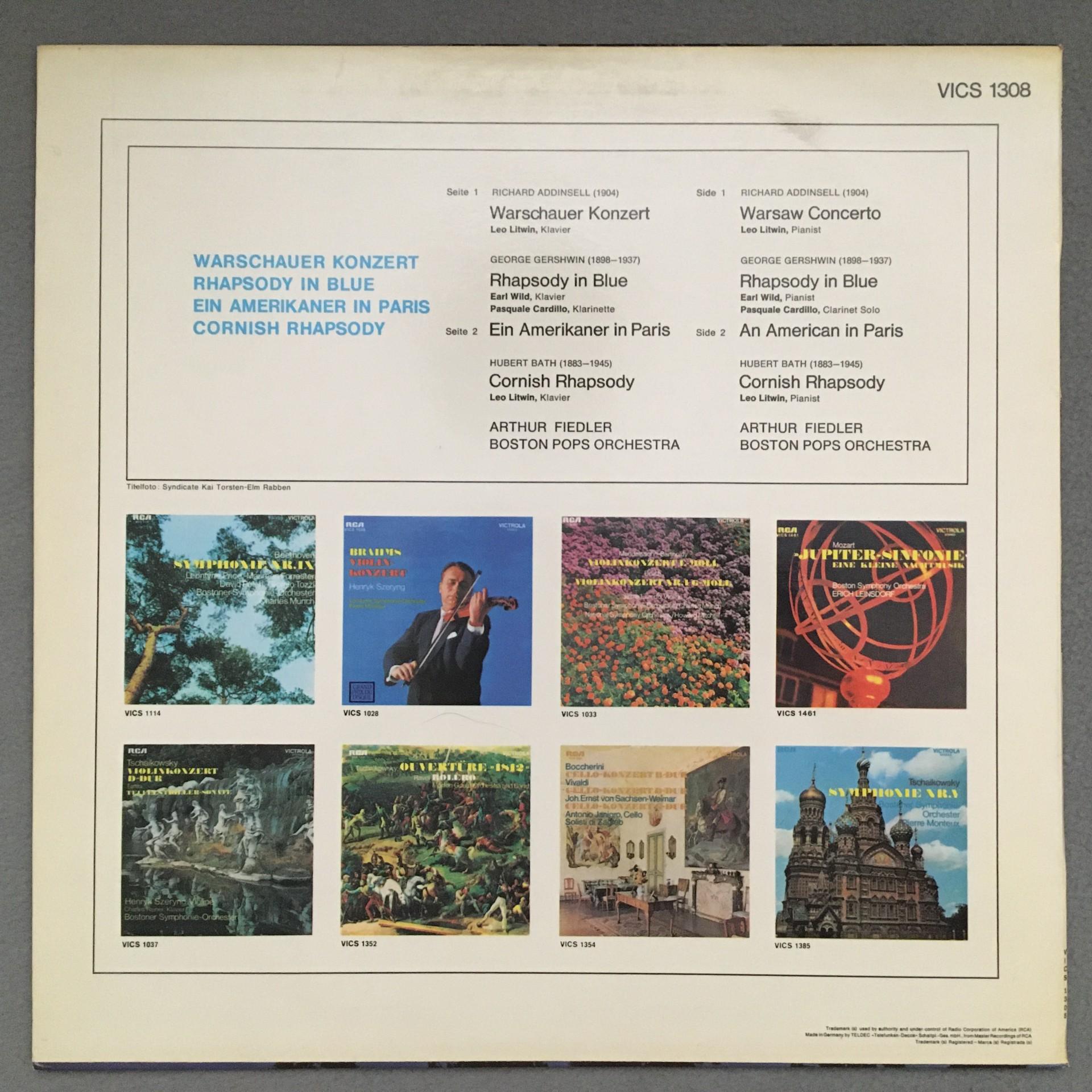 K981 Gershwin Rhapsody in Blue Addinsell Bath Fiedler RCA VICS 1308 Stereo