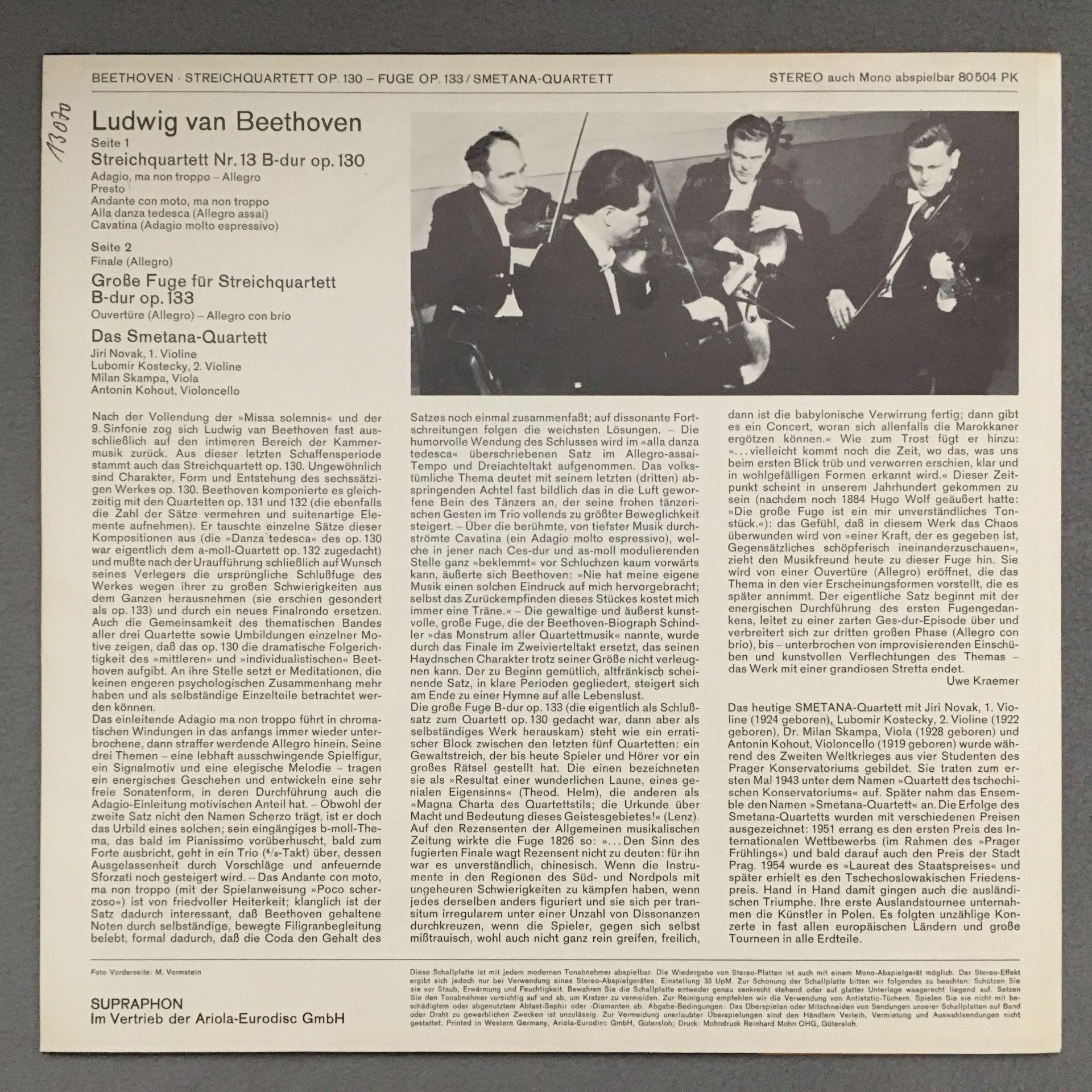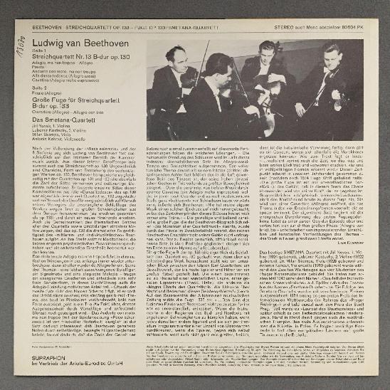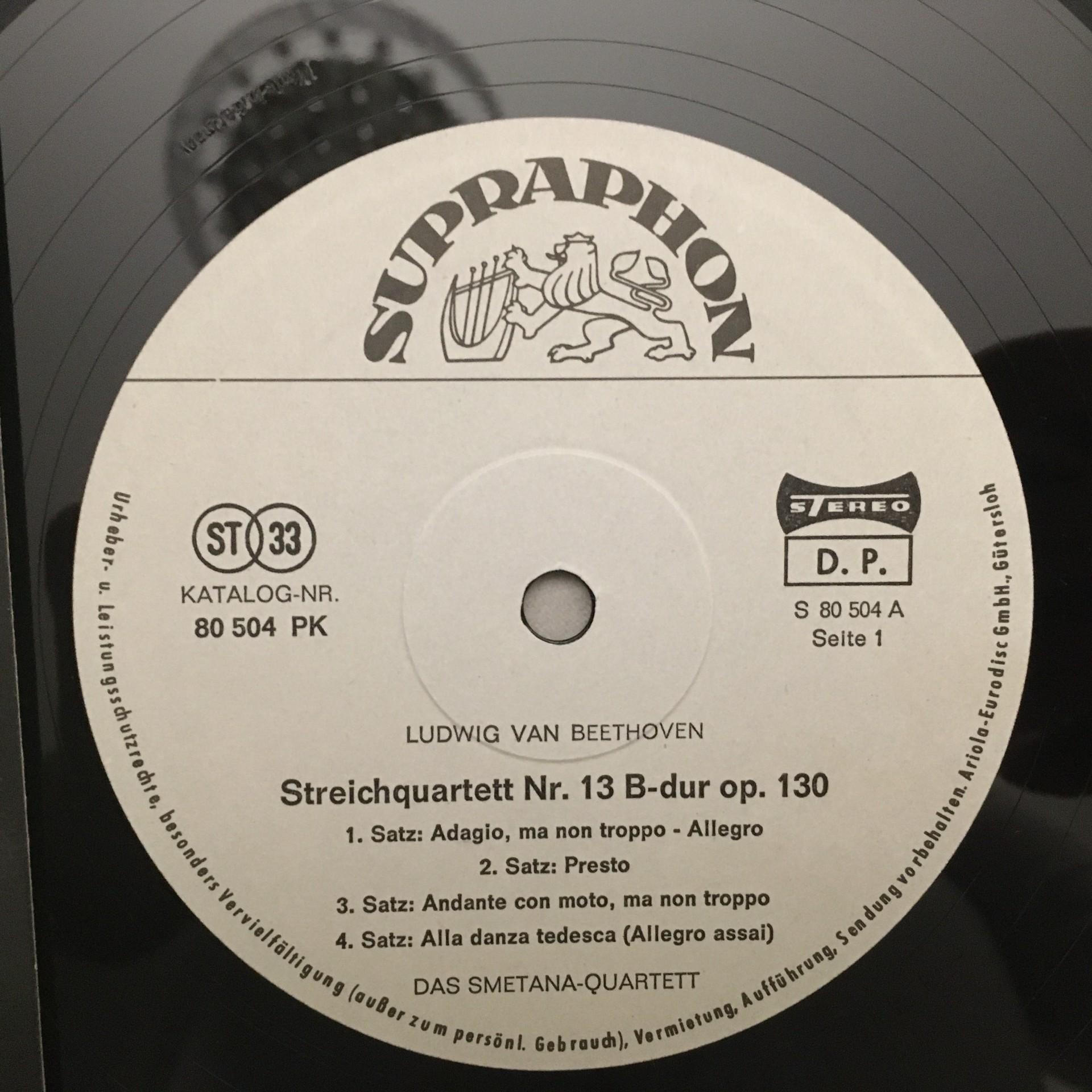 K984 Beethoven String Quartet Smetana Quartet Supraphon 80 504 PK Stereo