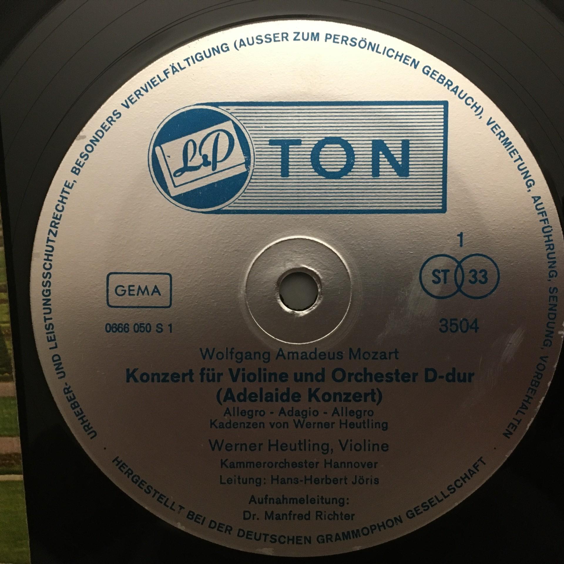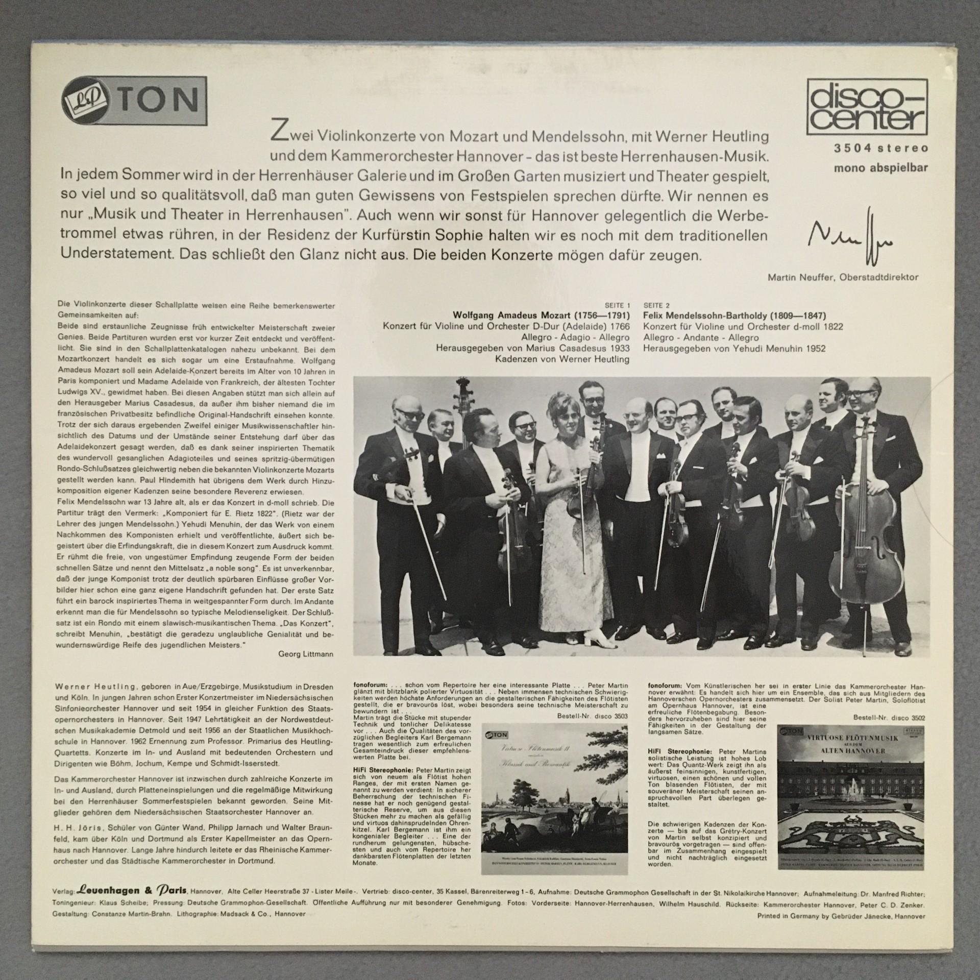 K986 Mozart Mendelssohn Violin Concertos Heutling Jöris L&P Ton 3504 Stereo