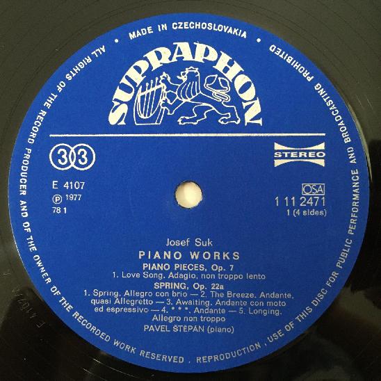 B639 Josef Suk Piano Works Pavel Stepan Piano 2LP Supraphon 1 11 2471/2 Stereo
