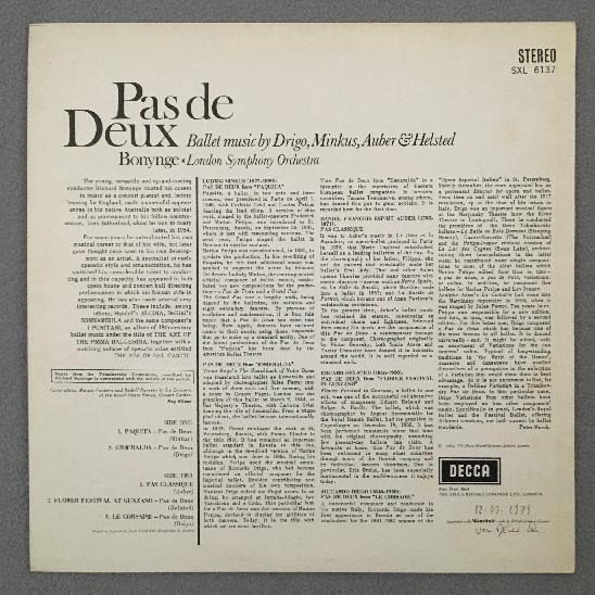 K996 Pas de Deux Drigo Minkus Auber Helsted Bonynge DECCA SXL 6137 Stereo