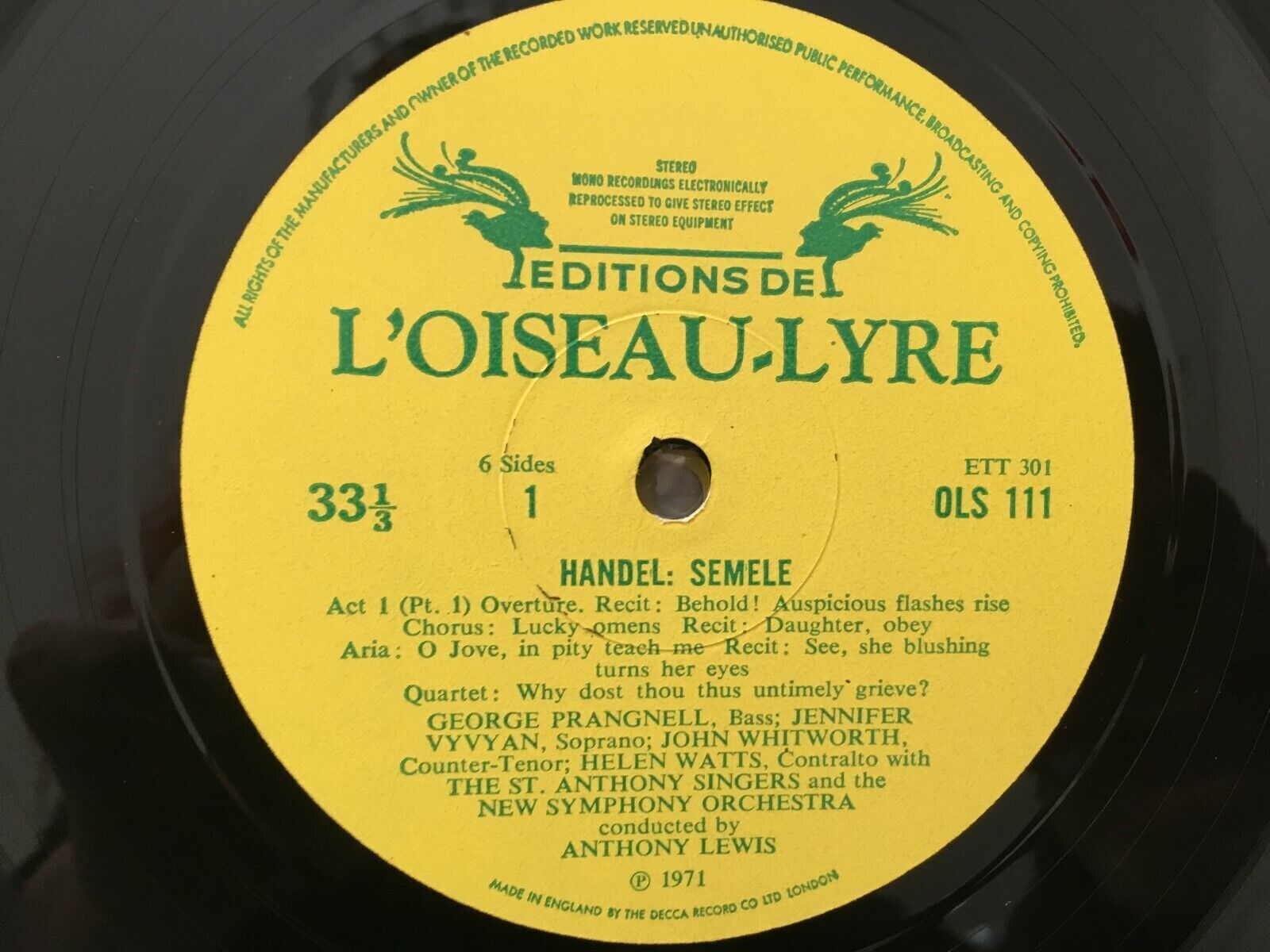 B662 Handel Semele Watts Lewis LSO 3LP L´Oiseau-Lyre OLS 111-3 Stereo