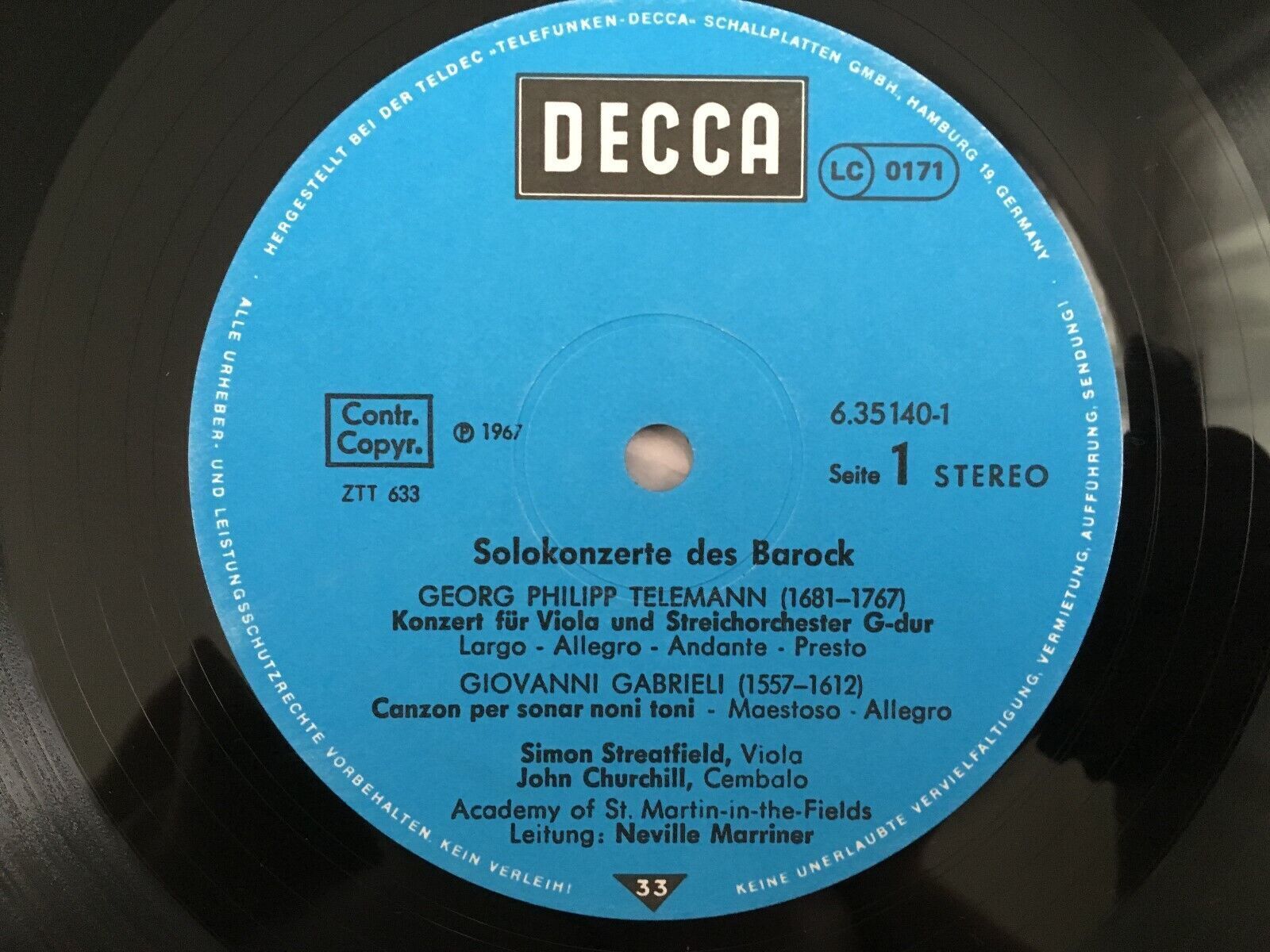 B731 Baroque Solo Concertos Vivaldi Handel Telemann 2LP DECCA 6.35140 DX Stereo