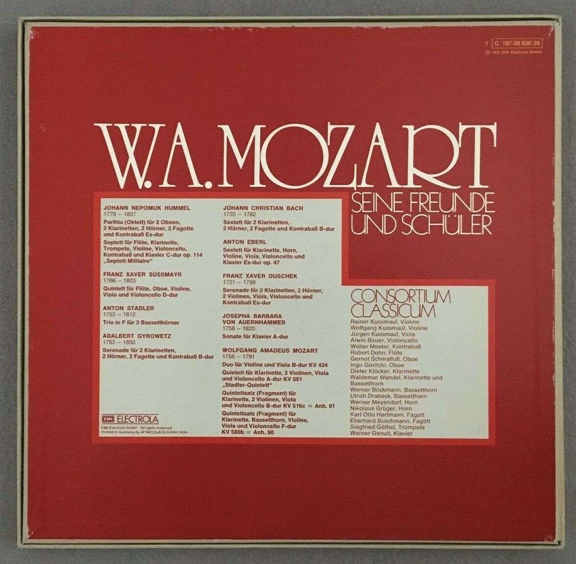 B737 Mozart & Students Consortium Classicum 4LP Electrola 1C 187-28 836/39 Stere