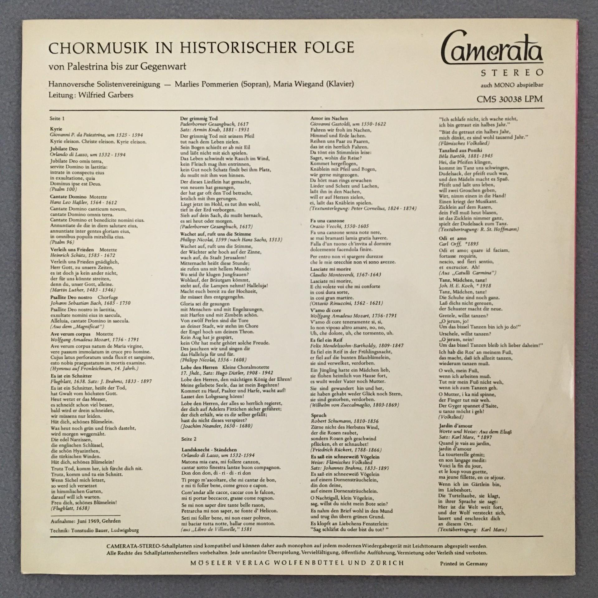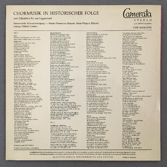 L036 Choral Music Pommerien Wiegand Garbers Camerata CMS 30038 LPM Stereo