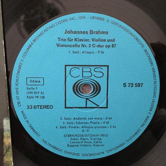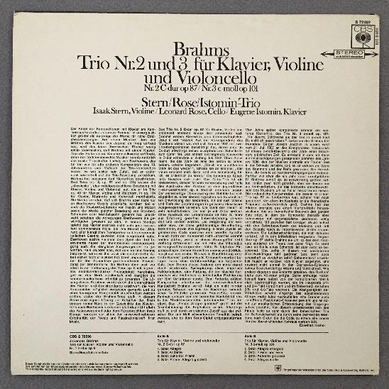 L044 Brahms Trios No.2 & No.3 Stern Rose Istomin Trio CBS S 72 597 Stereo