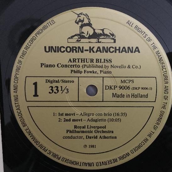 L111 Bliss Piano Concerto Fowke Atherton Unicorn DKP 9006 Digital Stereo