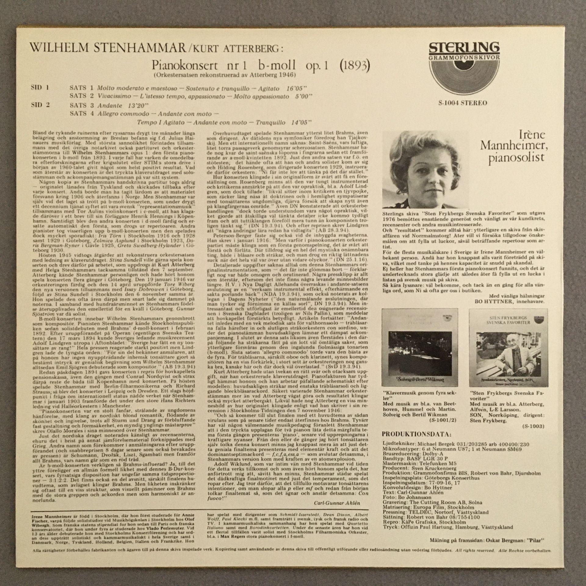 L117 Stenhammar Piano Concerto Mannheimer Dutoit Sterling S-1004 Stereo