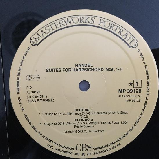 L123 Handel Harpsichord Suites No.1-4 Gould CBS MP 39128 Stereo