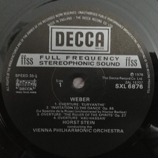 L139 von Weber Symphony Overtures Stein VPO DECCA SXL 6876 Stereo
