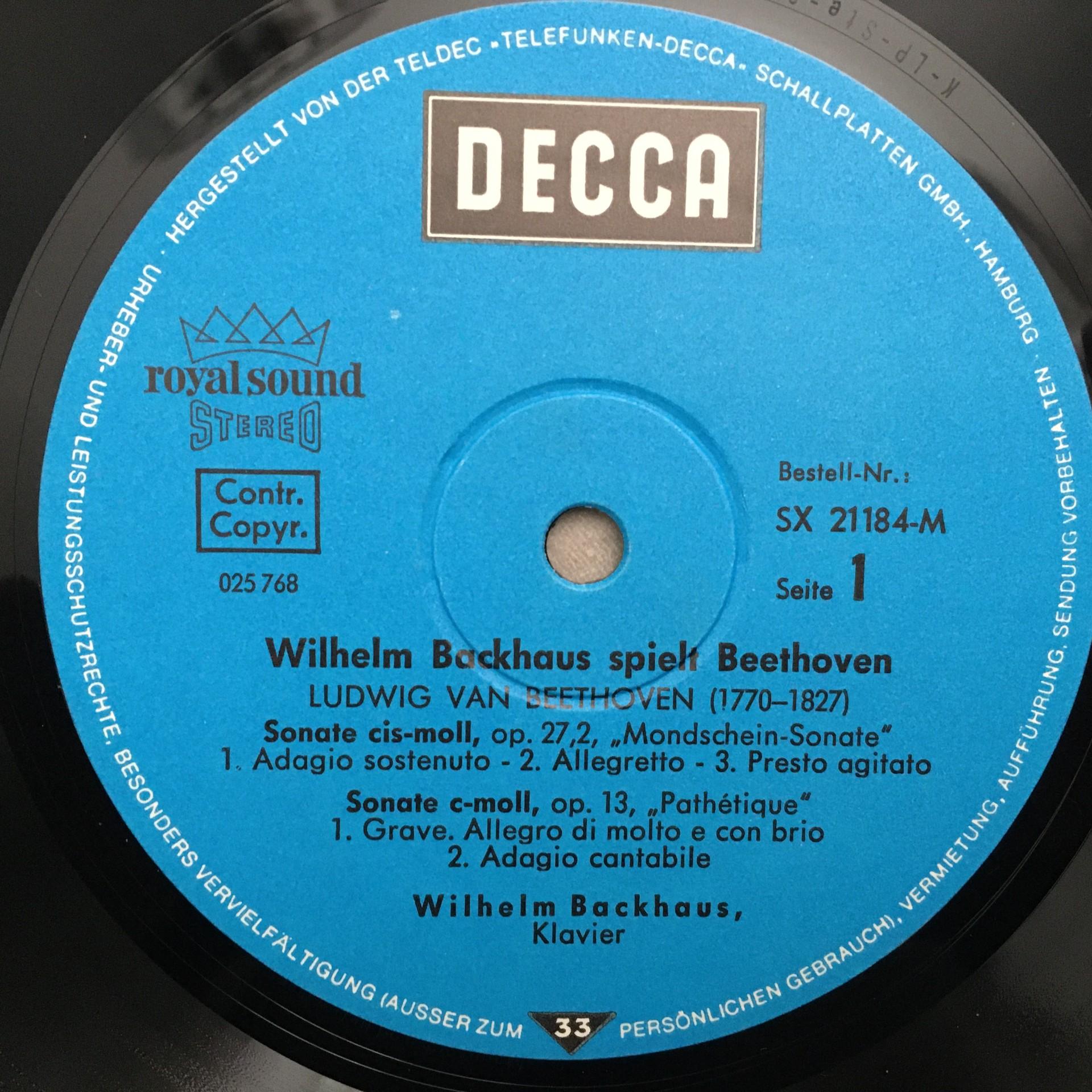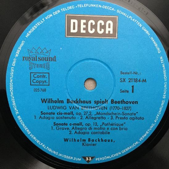 L162 Beethoven Sonatas Mondschein Appassionata Backhaus DECCA SX 21 184-M Stereo