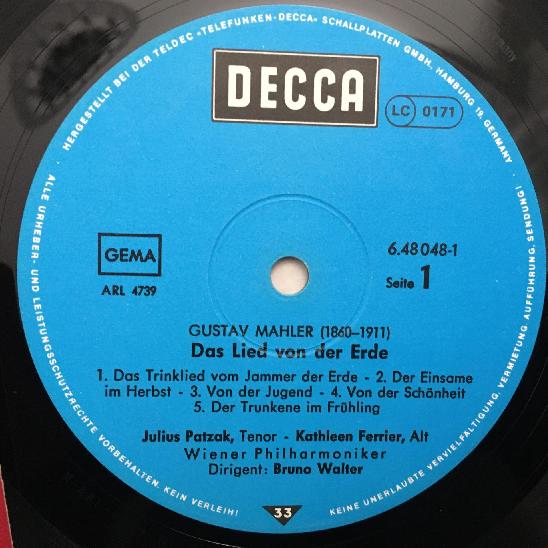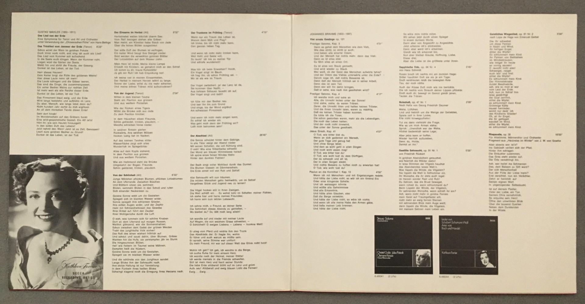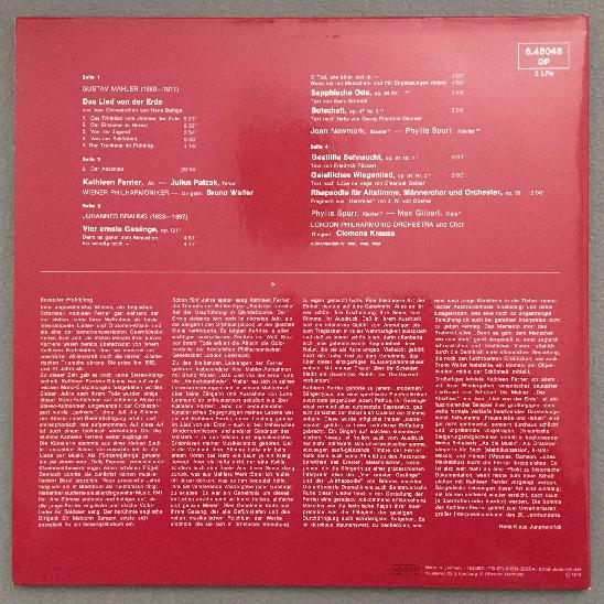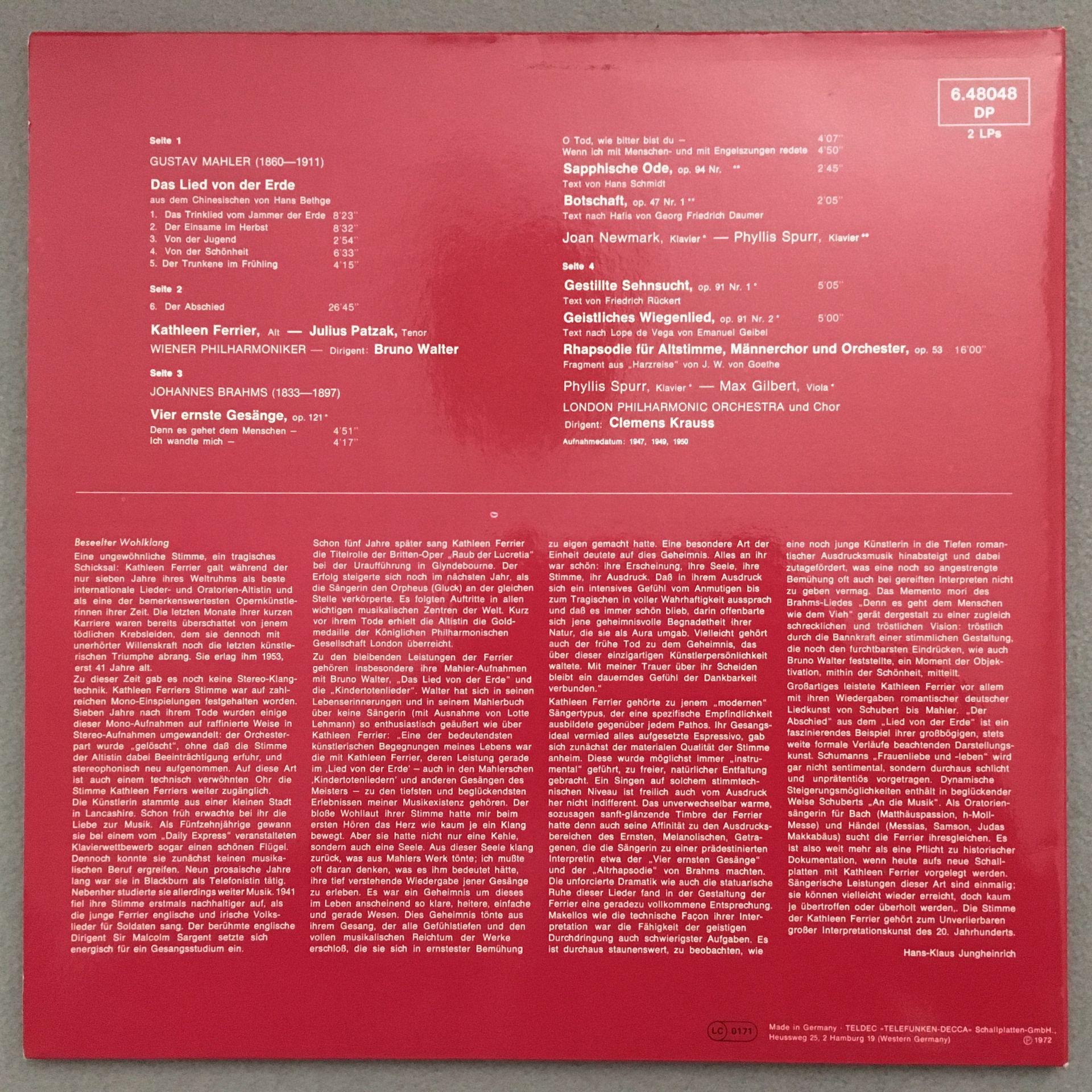 L167 Mahler Song from the Earth Brahms Ferrier Walter 2LP DECCA 6.48048 DP