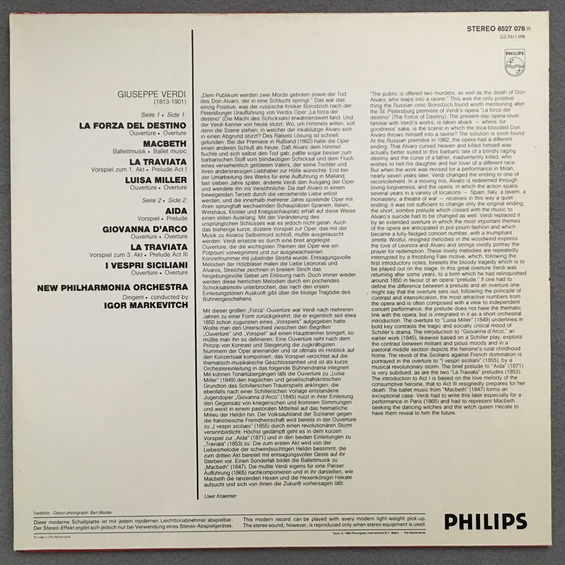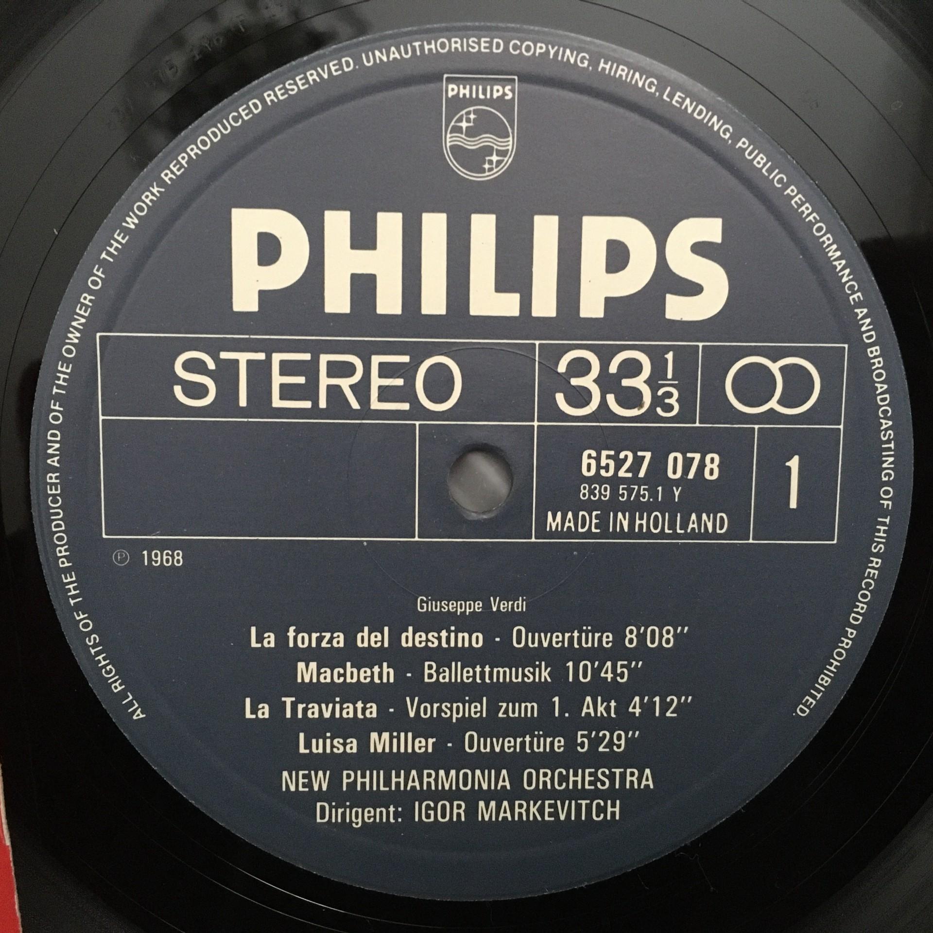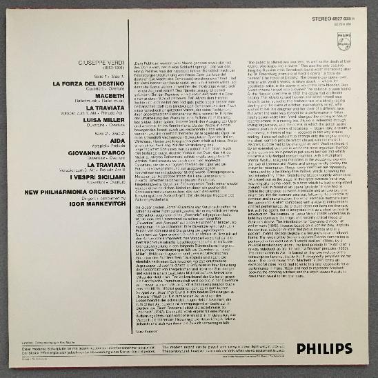 L180 Verdi Overtures La Traviata Aida MacBeth Markevitch Philips 6527 078 Stereo