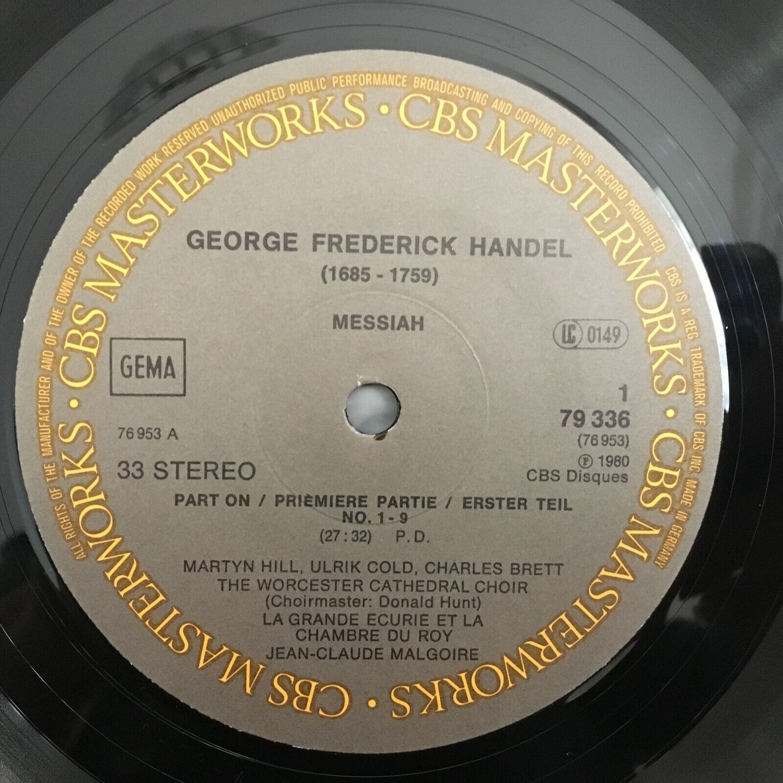 B054 Handel Messiah Smith Brett Hill Cold Malgoire 3LP CBS 79336 Stereo