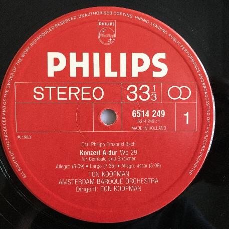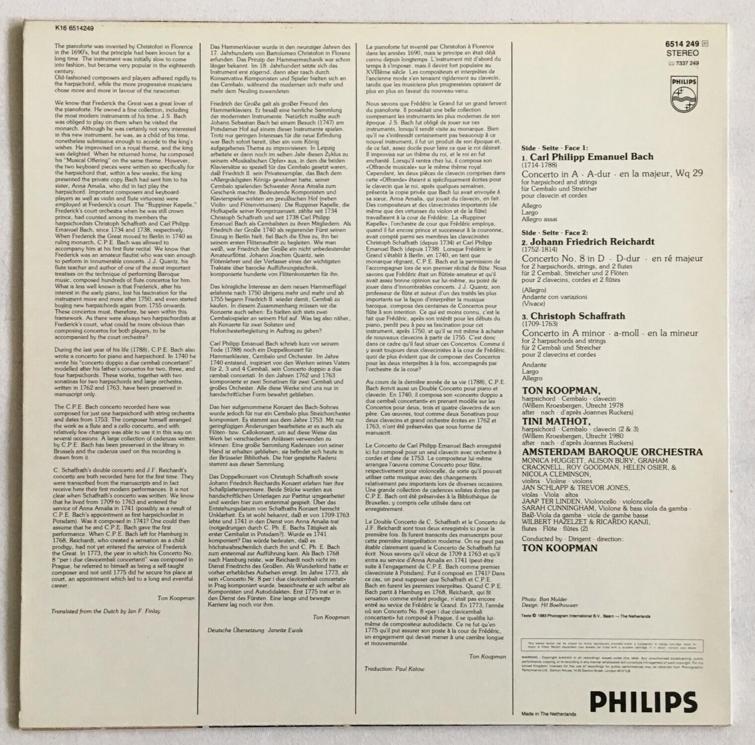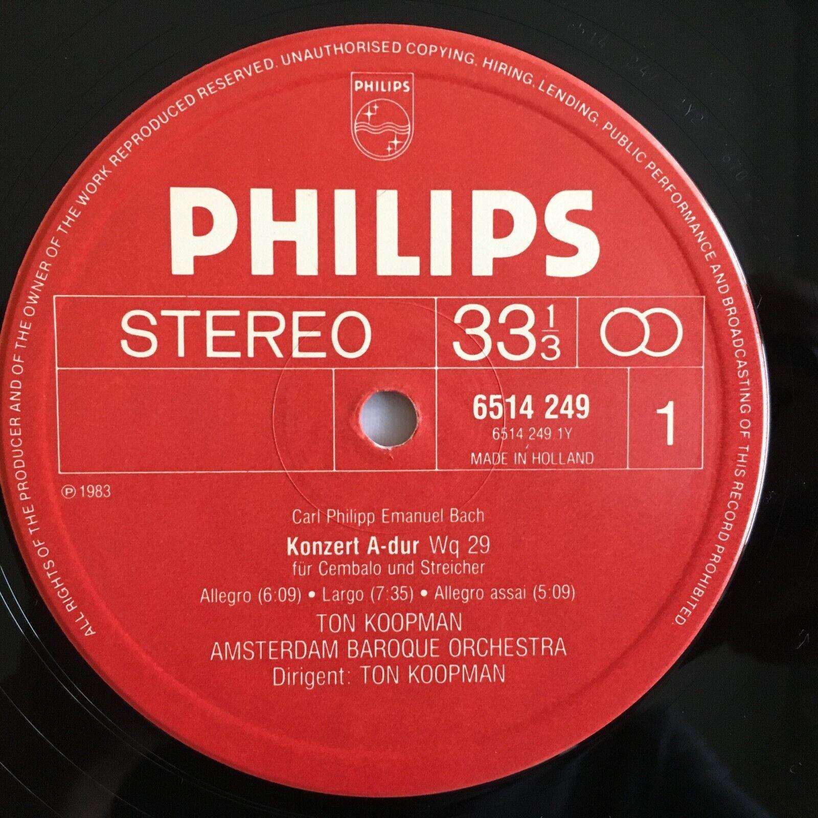 P101 C.P.E. Bach Harpsichord Concerto Koopman Mathot Philips 6514 249 Stereo