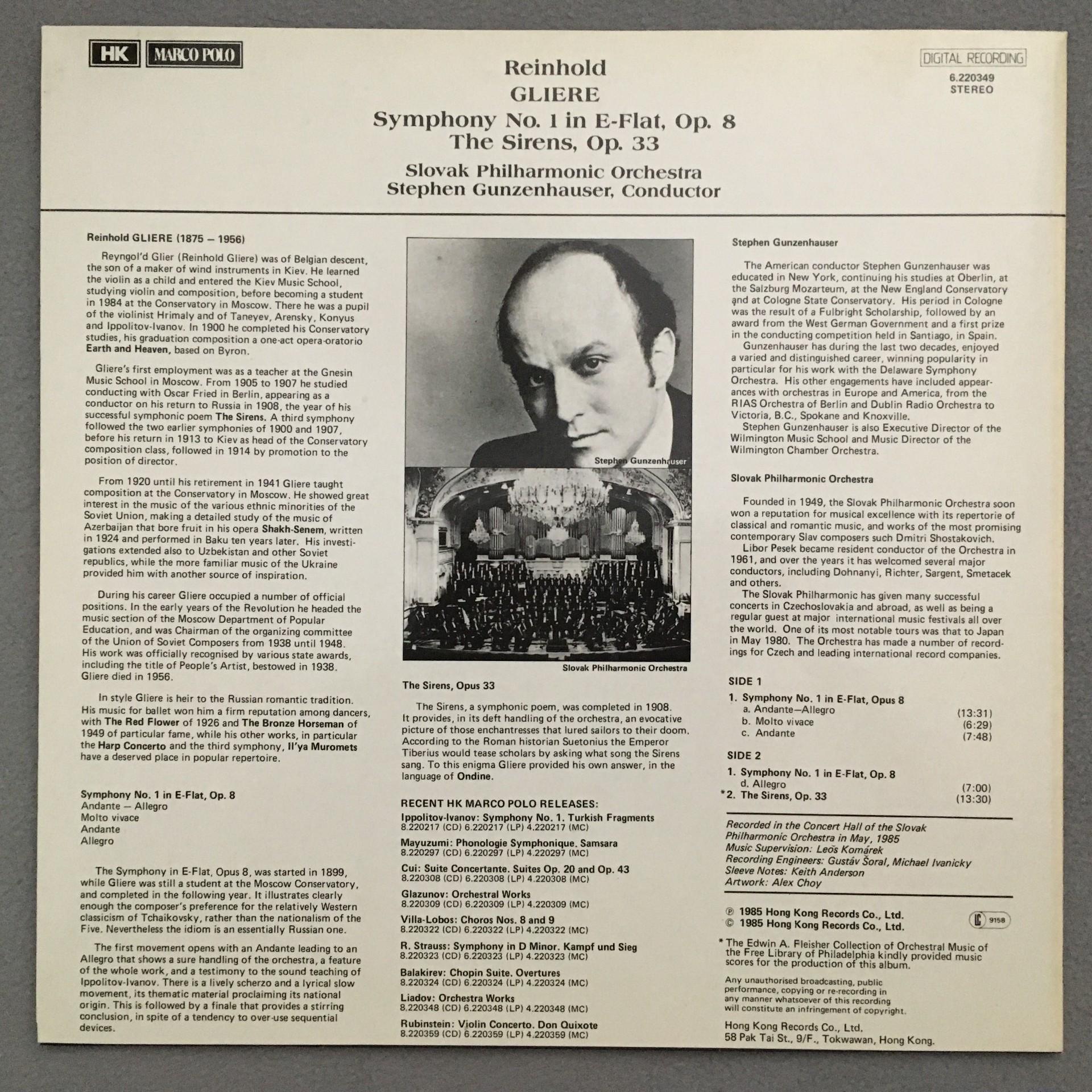 L188 Gliere Symphony No.1 Gunzenhauser Marco Polo 6.220349 Digital Stereo